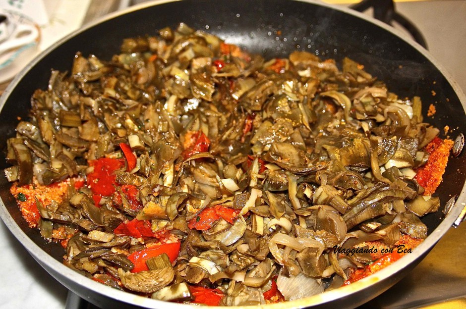 • A cottura ultimata aggiungere 2 cucchiai abbondanti di pangrattato ed un po’ di prezzemolo