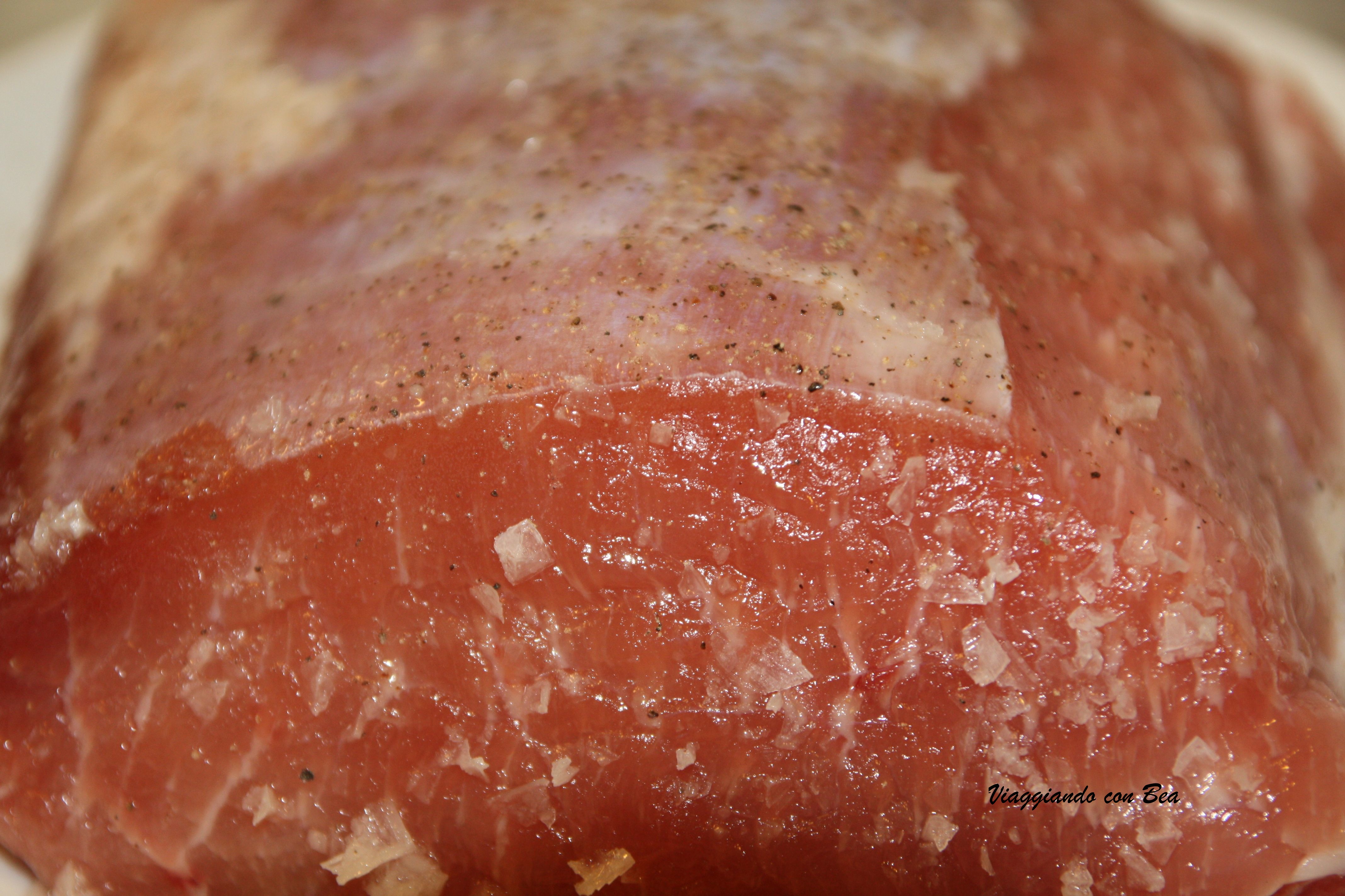 • Cospargere l’arista con un po’ di fiocchi di sale ed una spruzzata di pepe