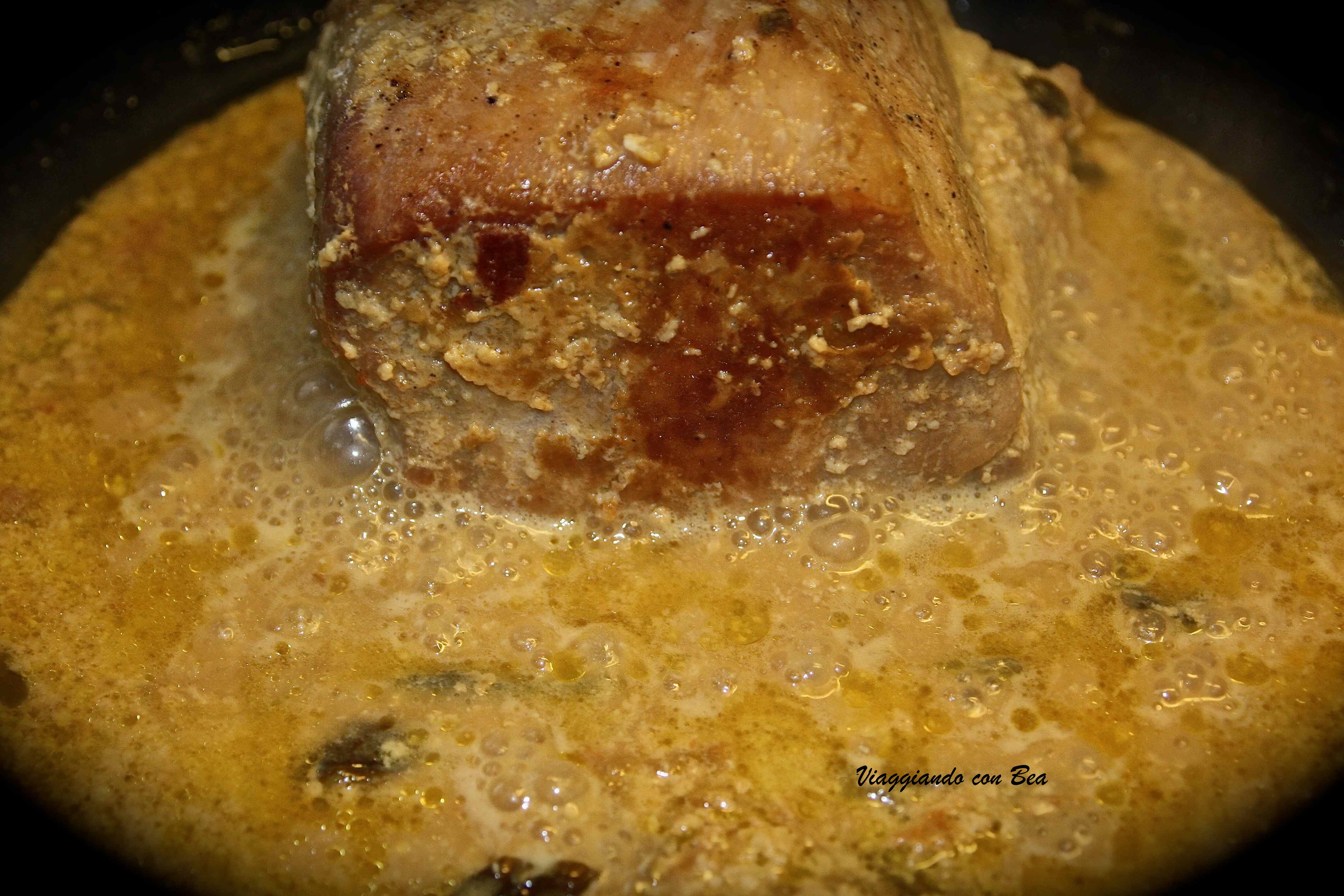 • Abbassare la fiamma e far cuocere per circa 1 ora e mezzo. Durante la cottura girare continuamente il pezzo ed aggiungere dell’altro latte poco per volta