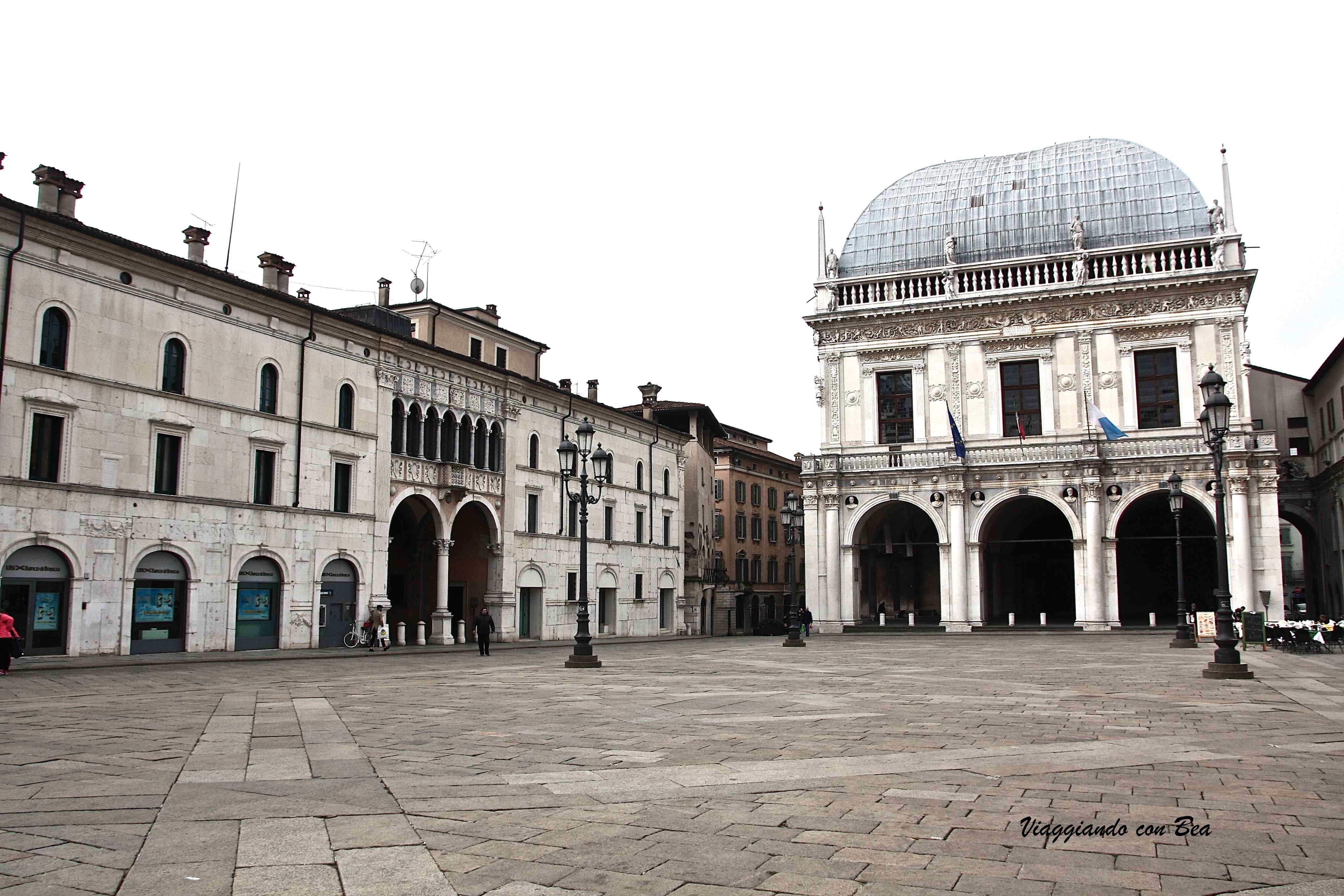 La Piazza è dominata dal Palazzo della Loggia con la sua splendida facciata in marmo bianco. La Loggia, eretta tra il 1492 ed il 1574 in stile Rinascimentale, è l’antico palazzo del Comune ed ancora oggi è sede della giunta comunale. Ha un pianterreno dove sono presenti una serie di colonne e pilastri ed un piano superiore riccamente ornato. Varcato il bellissimo portale, un sontuoso scalone porta alle sale decorate da pittori del ‘500 e pittori moderni. Sulla Piazza si affacciano altri edifici cinquecenteschi in stile veneziano tra cui un edificio a portici sormontati dalla Torre dell’Orologio situato nel lato opposto alla Loggia. Sul lato sud della Piazza troviamo l’edificio del Monte di Pietà che presenta nella facciata vari reperti di epoca romana. Questa piazza da molti è tristemente ricordata per la strage del 1974 ad opera di gruppi neofascisti.