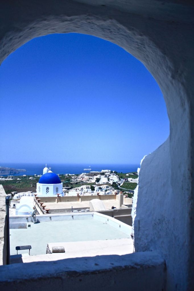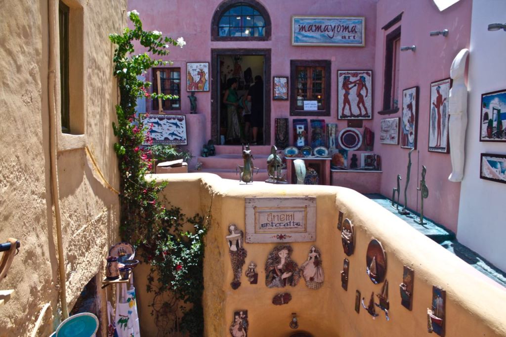 Hai sentito parlare dei villaggi autentici di quest’isola e allora risali in macchina e punti il navigatore verso Exo Gonia, Pyrgos o Megalohori. A Pyrgos ti ritroverai ad inerpicarti in quel dedalo di vicoli acciottolati di un bianco quasi accecante, che con le sue case e le sue chiese, dalle caratteristiche cupole azzurre, ha conservato intatto l’aspetto medioevale di un tempo. E’ qui che percepirai nell’aria l’essenza di quella Grecia che nel nostro immaginario noi tutti sogniamo.