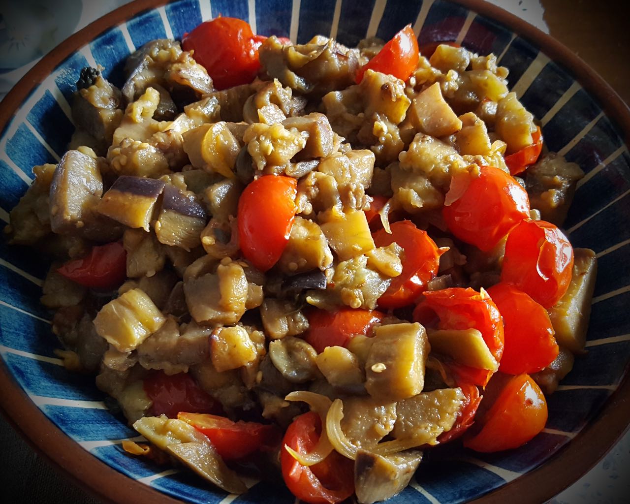 • A cottura ultimata unire i pomodorini alle melanzane e far saltare in padella ancora per qualche minuto