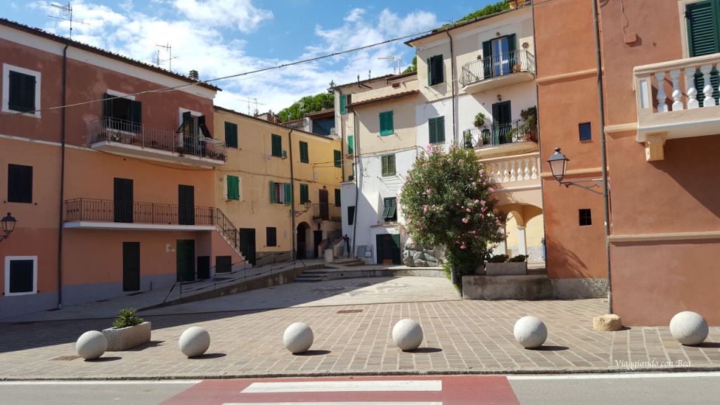 ” Quando ero bambina le case di Rio Marina brillavano, quando alle prime luci dell’ alba, i raggi del sole si posavano su di esse e colpivano i minuscoli cristalli di pirite incastonati negli intonaci. Un recente restyling, che purtroppo ha coinvolto anche la Torre, ha cambiato volto al paese, che ora e’ dipinto di toni pastello, alla stregua di un paesino ligure, non meno bello, ma che ormai ha perso l’ appellativo del paese che brilla. Rio Marina e’ divisa in rioni, e quello sopra la Torre, il Castello, e’ il mio rione, caratterizzato da alti palazzi addossati l’uno all’altro, senza soluzione di continuita’ come in cerca di una reciproca protezione. Le miniere di ferro, attive gia’ dai tempi degli etruschi, si estendono fin sopra il paese, ed il suono della sirena (il fischio), scandiva anche le attivita’ degli abitanti. Era proprio il fischio che a mezzogiorno mi induceva a lasciare di corsa  la spiaggia, dove nelle lunghe mattinate estive stazionavo con i miei amici, prima che la mia mamma con una  voce che di sicuro copriva il fischio, si affacciasse alla finestra e cominciasse a gridare, facendomi vergognare davanti a  tutti: ” moviti deboscio, che la tu nonna ha gia’ cavato la pasta!”