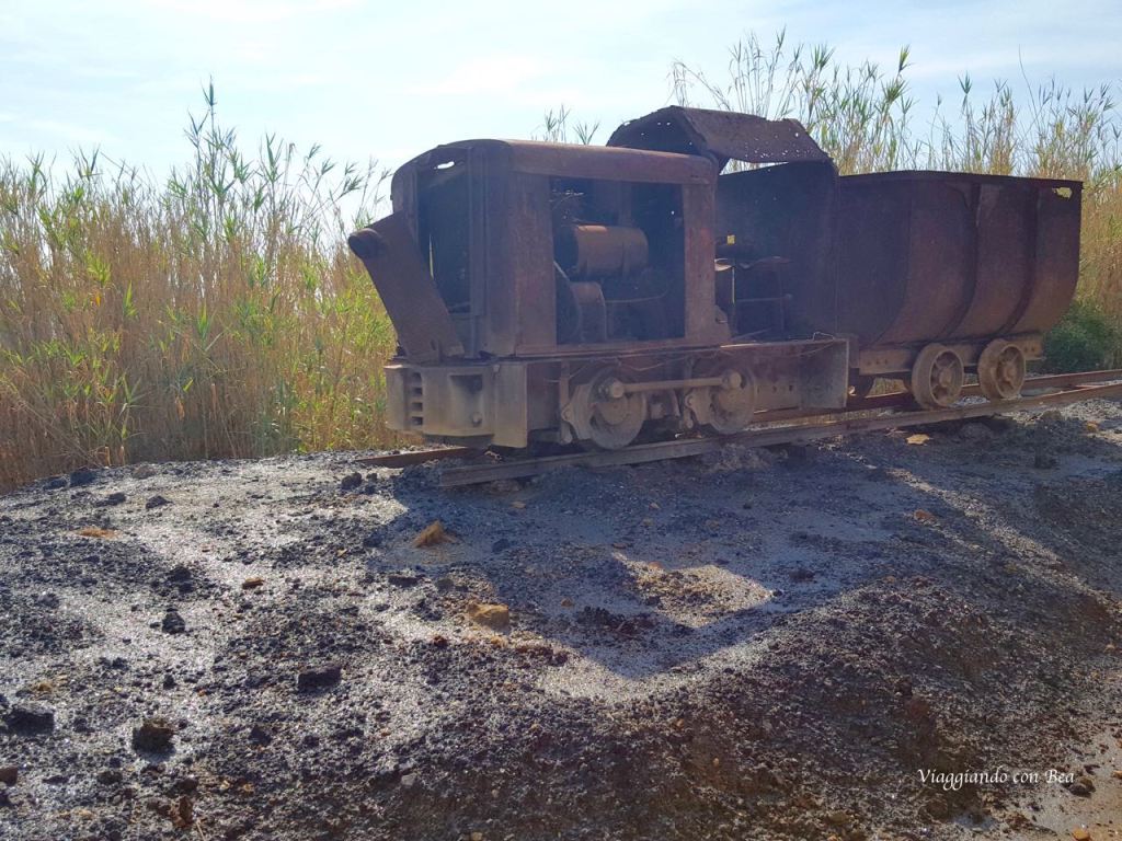 Peccato che l’audio della registrazione a bordo faceva molto desiderare. Non abbiamo capito una sola parola e credo proprio che il Parco Minerario dovrebbe migliorare questo servizio. Comunque Bea, come una bimba, si è divertita ad immortalare ora i resti dei vecchi impianti di lavorazione