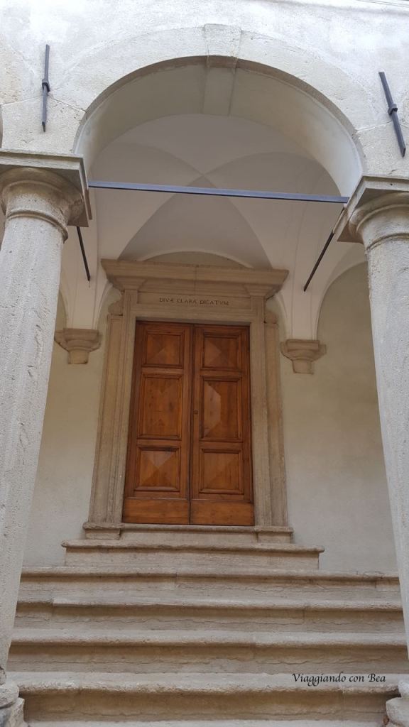 Poco più avanti raggiungiamo il Monastero di Santa Chiara. Con fare furtivo entriamo nel cortile della sede universitaria e sbirciamo  alla ricerca di qualche traccia dell’antico passato di questo Monastero.