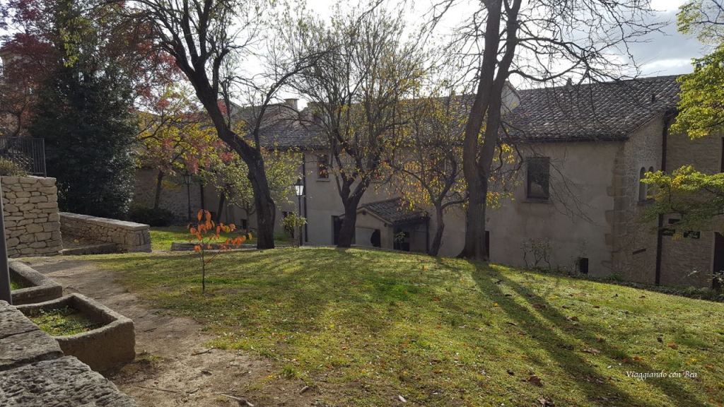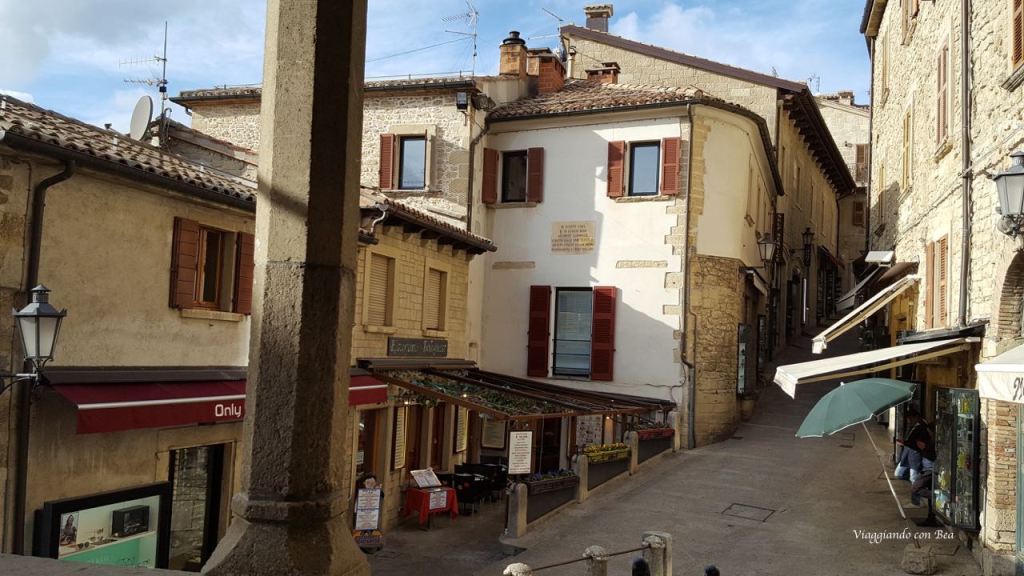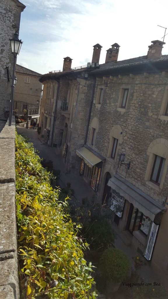 Oggi, in questa splendida giornata autunnale, mi sono concessa solo due ore di tempo per gustare una San Marino inedita. Non c’è traccia alcuna della milionata di turisti che solitamente invadono le vie del borgo, sento solo il rumore dei miei passi che rimbombano tra le vie deserte. Non ho una guida in mano, non ho la mia canon al collo e allora cerco di fare quel che posso. Fotografo con il mio samsung qualche particolare qua e là giusto per raccontare a Voi, che mi seguite, cosa vuol dire girare San Marino in una giornata tiepida di Novembre.