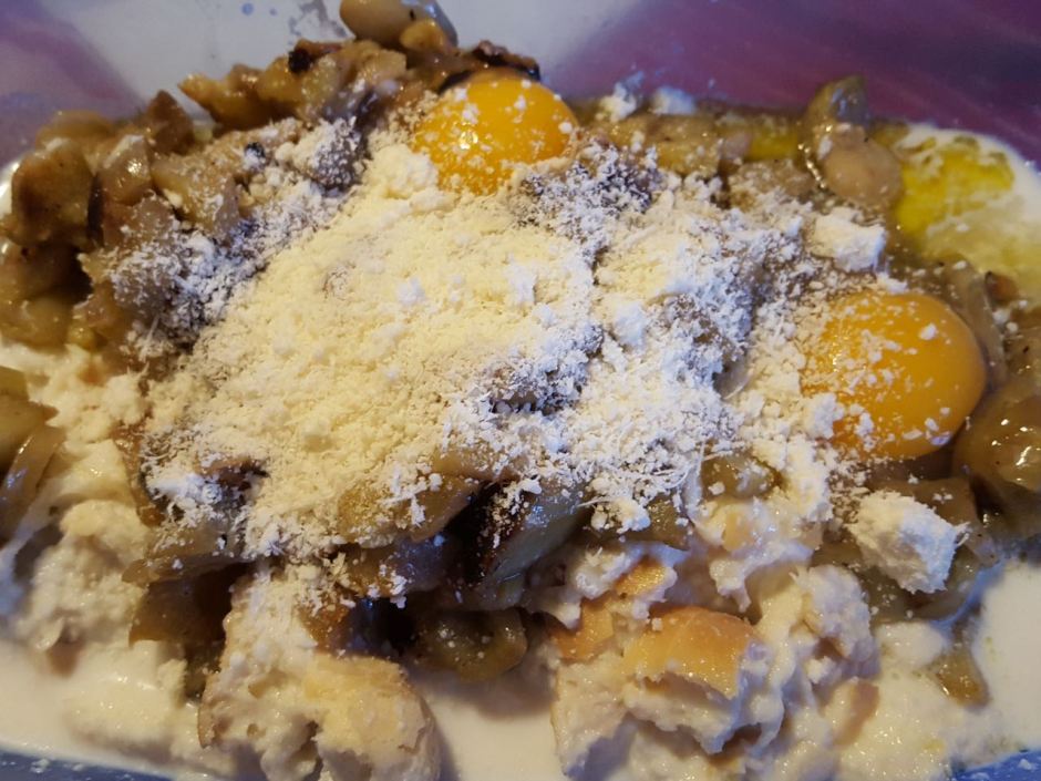 • a cottura ultimata mettere le melanzane in una pirofila ed unire le uova, il parmigiano ed il panino ammollato