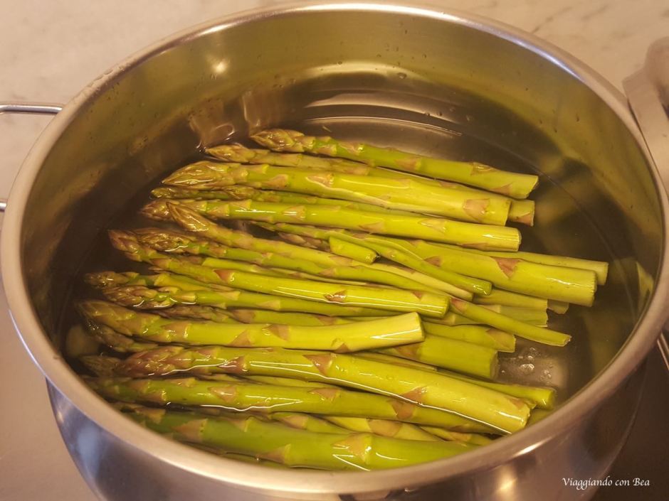 - pulire gli asparagi eliminando la parte del gambo più dura e lavarli accuratamente