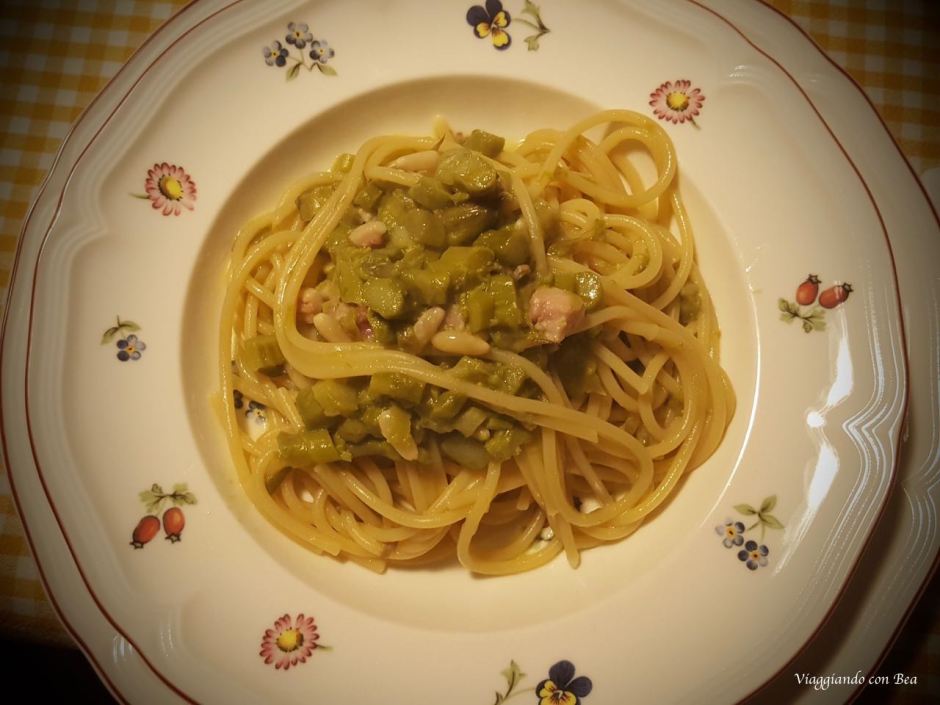 - 400 g di spaghetti (Per questa ricetta ho utilizzato il nr. 5 della Rummo in quanto questo tipo di pasta ha la caratteristica di trattenere perfettamente il condimento esaltandone il gusto ed il profumo)