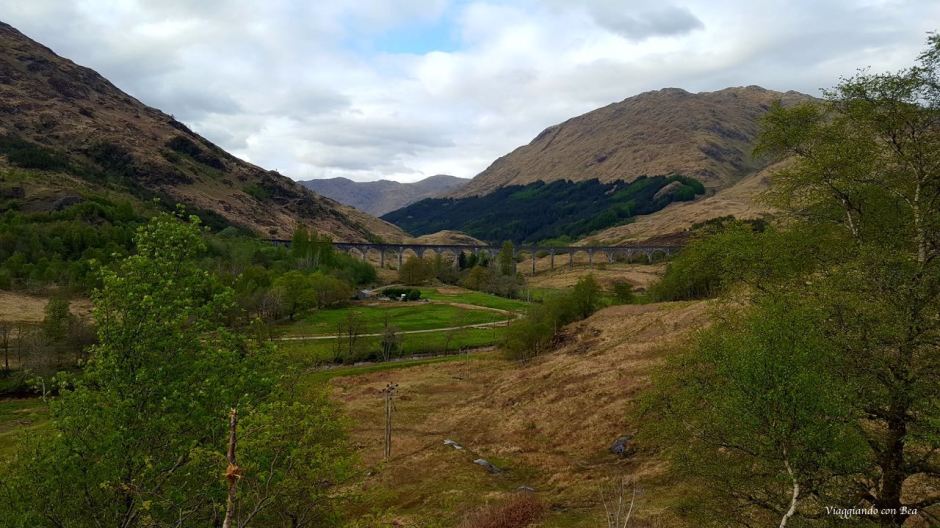 Adesso giriamo lo sguardo e alle nostre spalle si staglia il viadotto a 21 arcate reso famoso dal film di Harry Potter. Qui tutto è magia. C’inerpichiamo su per quel sentiero alle spalle del parcheggio ed in cuor nostro speriamo tanto di veder apparire, come d’incanto,  “Jacobite”, il pittoresco treno a vapore che percorre questo tratto di ferrovia che collega Fort William a Mallaig e che, con il suo sbuffo, ha incantato grandi e piccini.