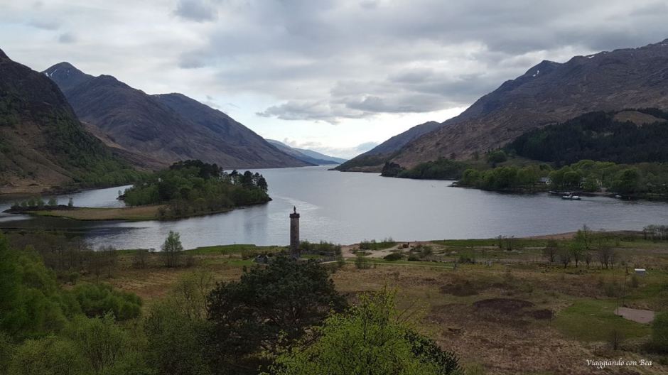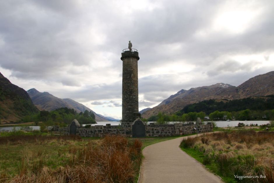 In questa corsa verso Glenfinnan mi sono sentita disorientata, non sapevo più dove fossi, ma non importa! I miei occhi si sono riempiti di scenari incredibili. Lasciandoci alle spalle la A82, s’imbocca la A830 e dopo una manciata di miglia si giunge a Glenfinnan e qui la storia si unisce alla fiaba. Parcheggiata la macchina  ci dirigiamo ai piedi del Gelnfinnan Monument, torre eretta nel 1815 sul luogo in cui Bonnie Prince Charlie nel 1745 alzò il suo stendardo per dare inizio alla rivolta giacobina.