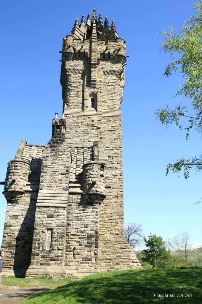 Risaliti in macchina si prosegue verso Stirling, cittadina in posizione strategica sul fiume Forth. Fu teatro di numerose battaglie tra cui due importanti vittorie sugli inglesi a opera di Robert I Bruce e William Wallace. Ricordate il film di Mel Gibson, Braveheart? Ecco la pellicola parla proprio della storia dell’eroe nazionale scozzese, William Wallace. Il programma di Bea prevedeva una sosta nella Old Town di Stirling, prevedeva una visita all’Holy Rude, una passeggiata lungo il Black Walk il sentiero che segue le antiche mura della città ed invece è saltato tutto. Avevamo troppi chilometri da percorrere e vi ricordo che qui siamo in Scozia! Con la guida a sinistra e le strade non eccessivamente larghe i tempi si allungano notevolmente, tuttavia uno stop piacevole lo abbiamo fatto sia al Wallace Monument che all’Old Bridge due punti storicamente molto importanti e strategici. La torre neogotica del Wallace Monument  è posta su un’altura che domina la vallata ed il ponte. Venne edificata nel 1869 per commemorare le gesta di Wallace ed al suo interno è possibile ammirare la sua spada di acciaio.
