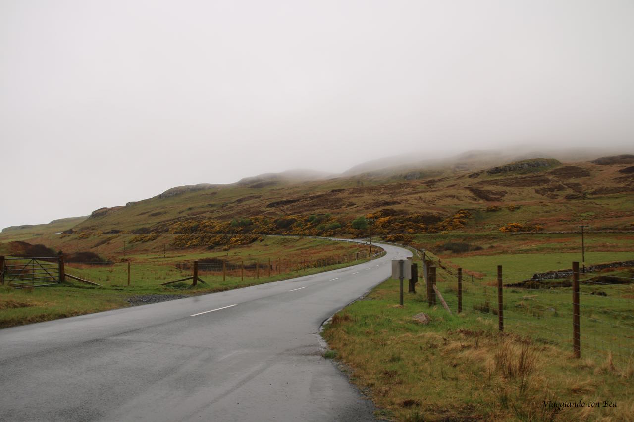 Secondo giorno on the road, si riparte dal Lochaillort Inn con la  felicità tipica di chi è stato veramente bene.  Pochi chilometri ci separano da Mallaig ma il nostro intento è di gustarci miglio dopo miglio la “Road to the isles”. Ho letto che questo è il tratto costiero più bello del Regno Unito. Il cielo è minaccioso, nubi scure all’orizzonte ma i panorami che si presentano ai nostri occhi sono di un bello inimmaginabile. Da Arisaig a Mallaig,