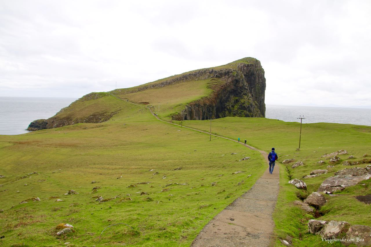 Come dicevo nel mio primo post,  “da queste parti quando piove è terribile.  Panorami  grigi e tristi, il mare diventa cupo ed i castelli sembrano un tutt’uno con la terra brulla”. Non potevamo perdere le speranze e così abbiamo iniziato la nostra marcia verso “Neist Point Lighthouse”.