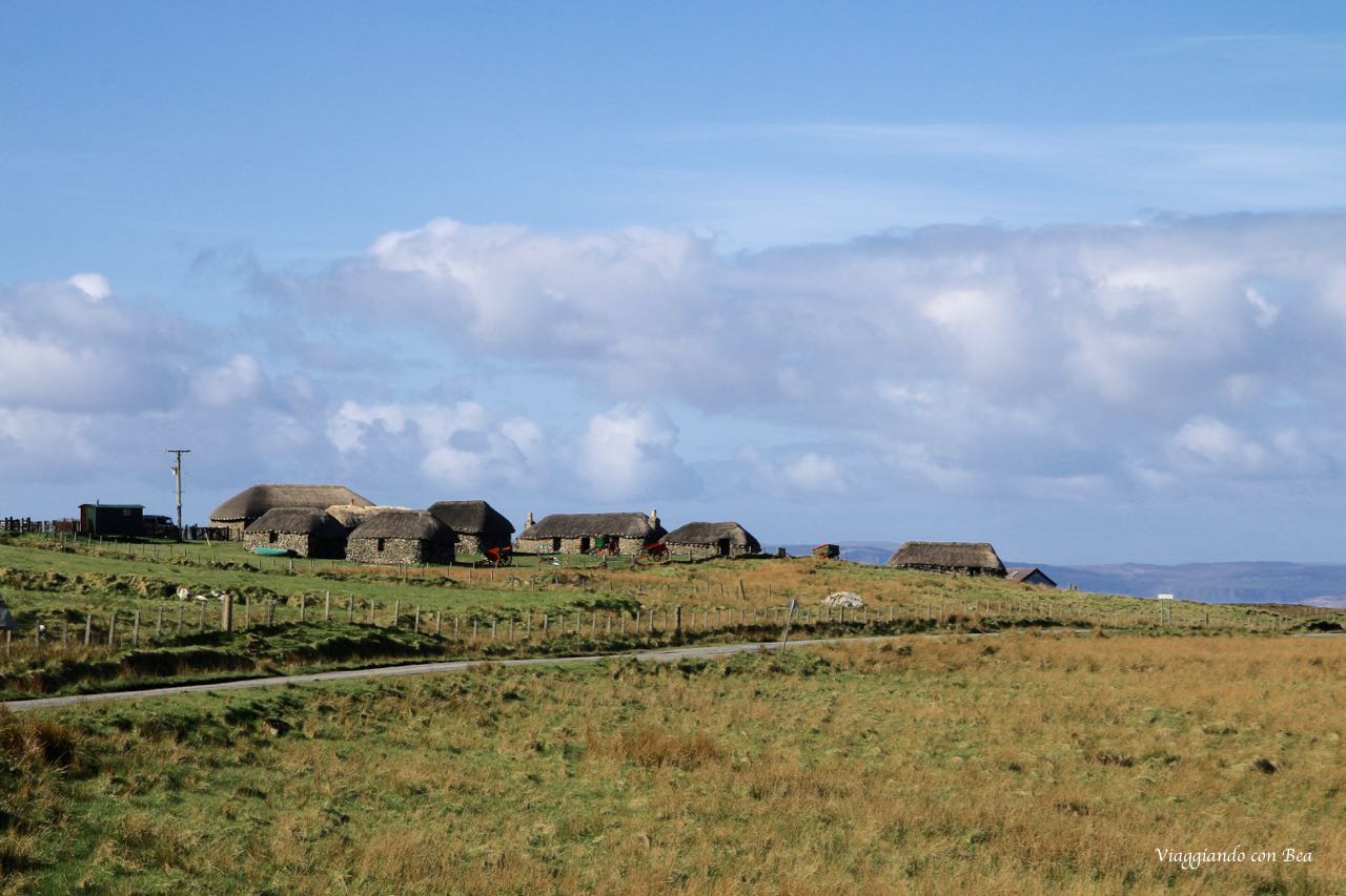 La nostra corsa procede lungo la A855, si passa davanti lo Skye Museum of Highland Life, museo all’aperto che catapulta il visitatore in quelle che un tempo erano le tipiche abitazioni dell’isola. Entrare all’interno di quelle casupole dai tetti in paglia è come fare un tuffo nel passato.