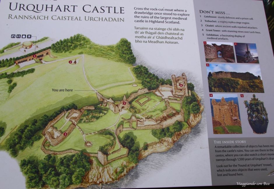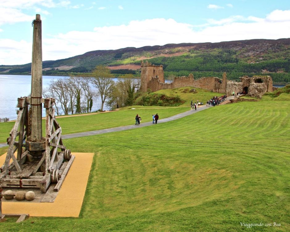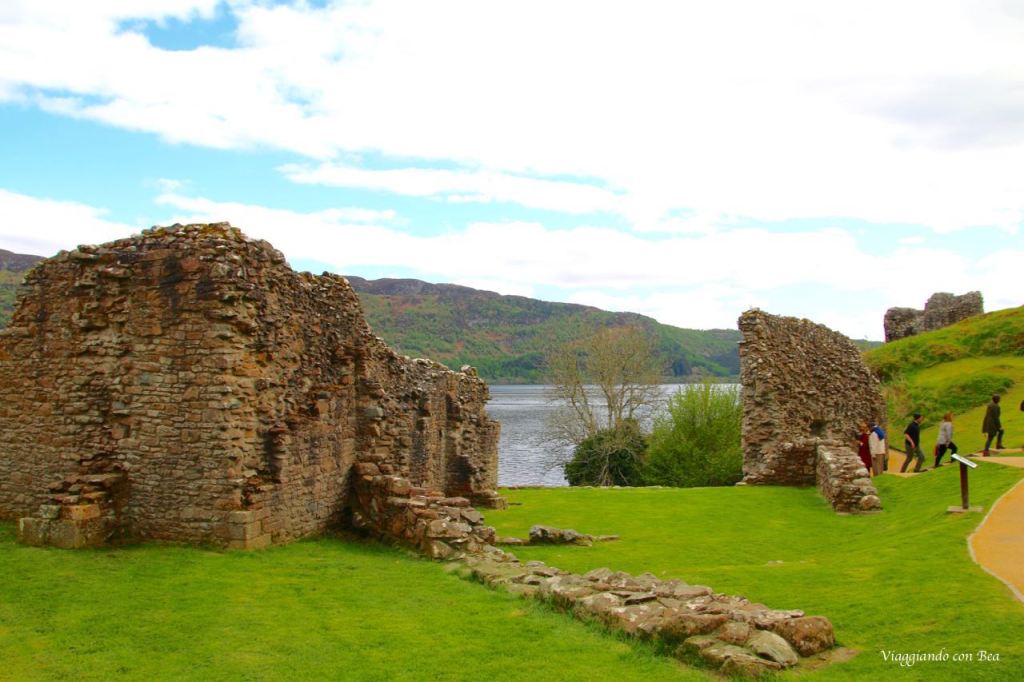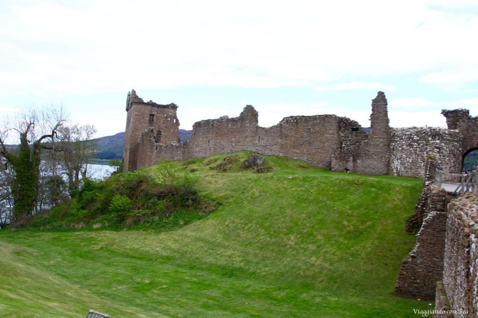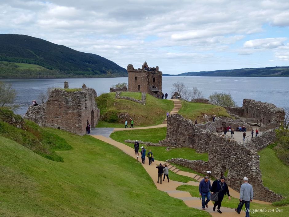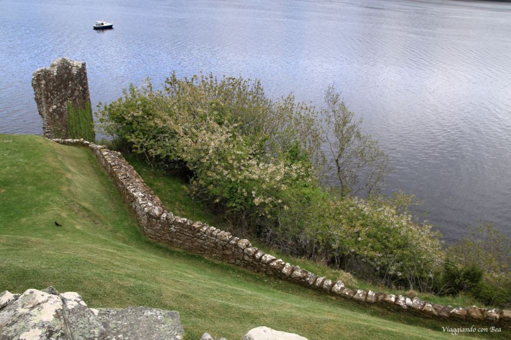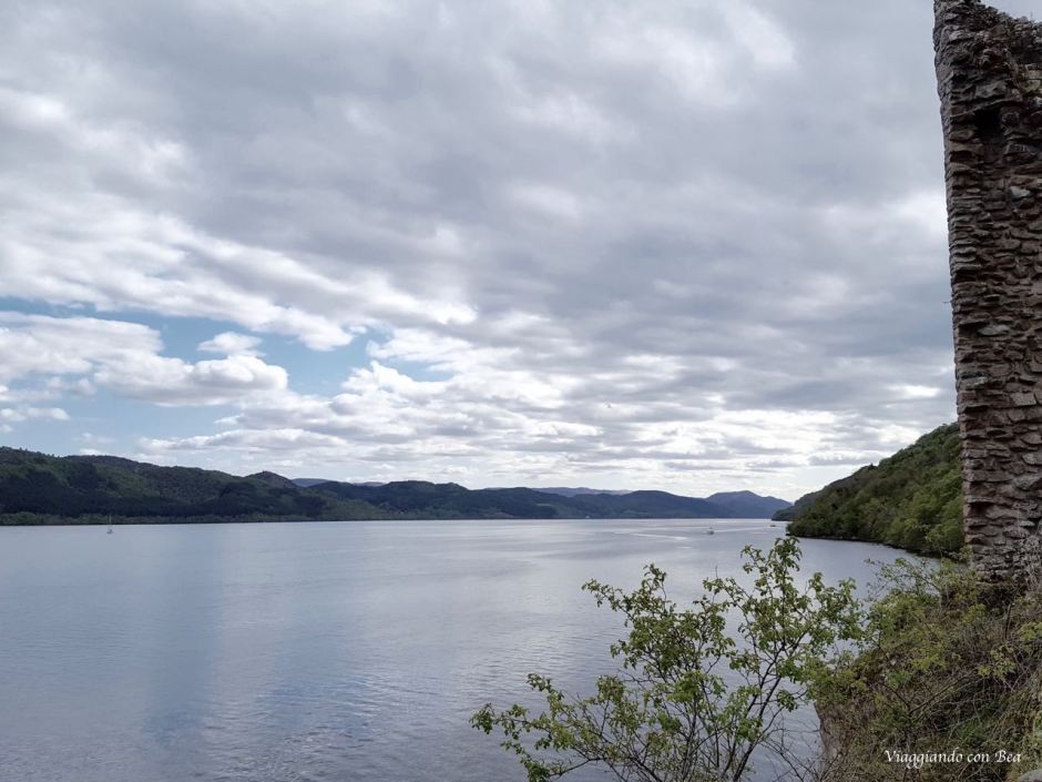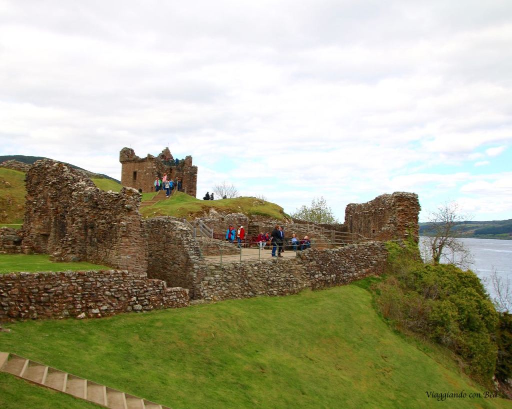 Beatrice nel suo post ci dice, con grande enfasi, che Urquhart è uno di quei luoghi che ti rimangono nel cuore. Lei si emoziona al pensiero di calpestare quei “sassi vecchi di centinaia di anni”, adora quei licheni colorati che ricoprono le mura di quella che una volta era una grande fortezza. “Viaggiando con Bea” non lo ha visto con occhi simili. La giornata era grigia, non un raggio di sole dava luce a quei ruderi. Urquhart va visto nel suo insieme ammirando dall’alto la posizione di quella trecentesca casa torre, in pietra, che troneggia sulle acque grigie del lago.