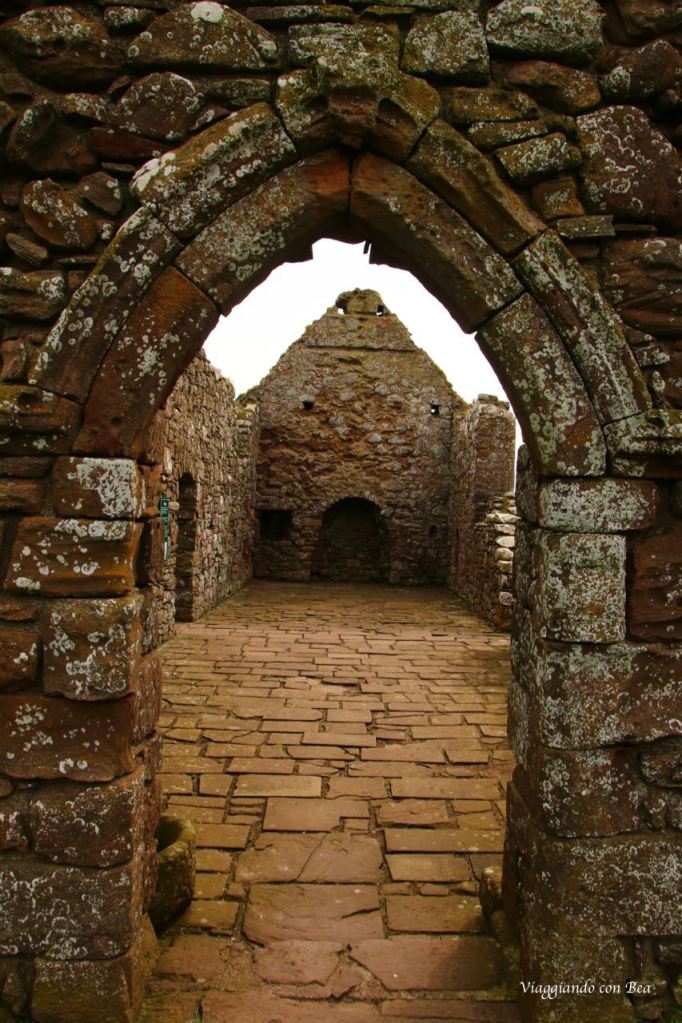 Percorriamo quello stretto sentiero che si snoda lungo la roccia e, varcato l’ingresso, ci dirigiamo verso quel che rimane di questa fortezza che, nel corso dei secoli, è stata teatro di numerose battaglie e atrocità. Fu qui che William Wallace diede fuoco ad una cappella gremita di soldati inglesi in cerca di un rifugio. Lo sapevate che  a Dunnottar, verso la metà del XVII secolo, vennero nascosti  i gioielli della corona di Scozia per tenerli al sicuro da Oliver Cromwell? Poi, in un secondo momento, da qui  vennero spostati in un luogo più sicuro. E’ a Dunnottar che 167 persone vennero imprigionate solo per essersi rifiutate di rinnegare la propria religione. E’ qui che Bea e la combriccola di amici a seguito stanno passeggiando spostandosi da un rudere all’altro.