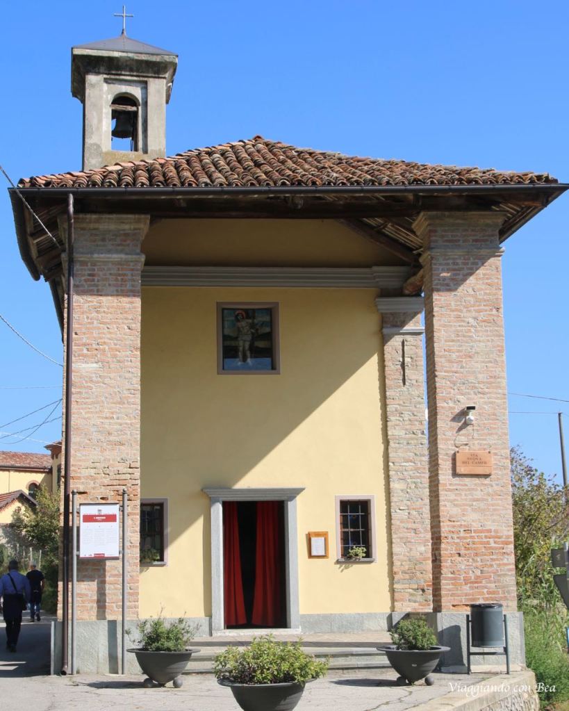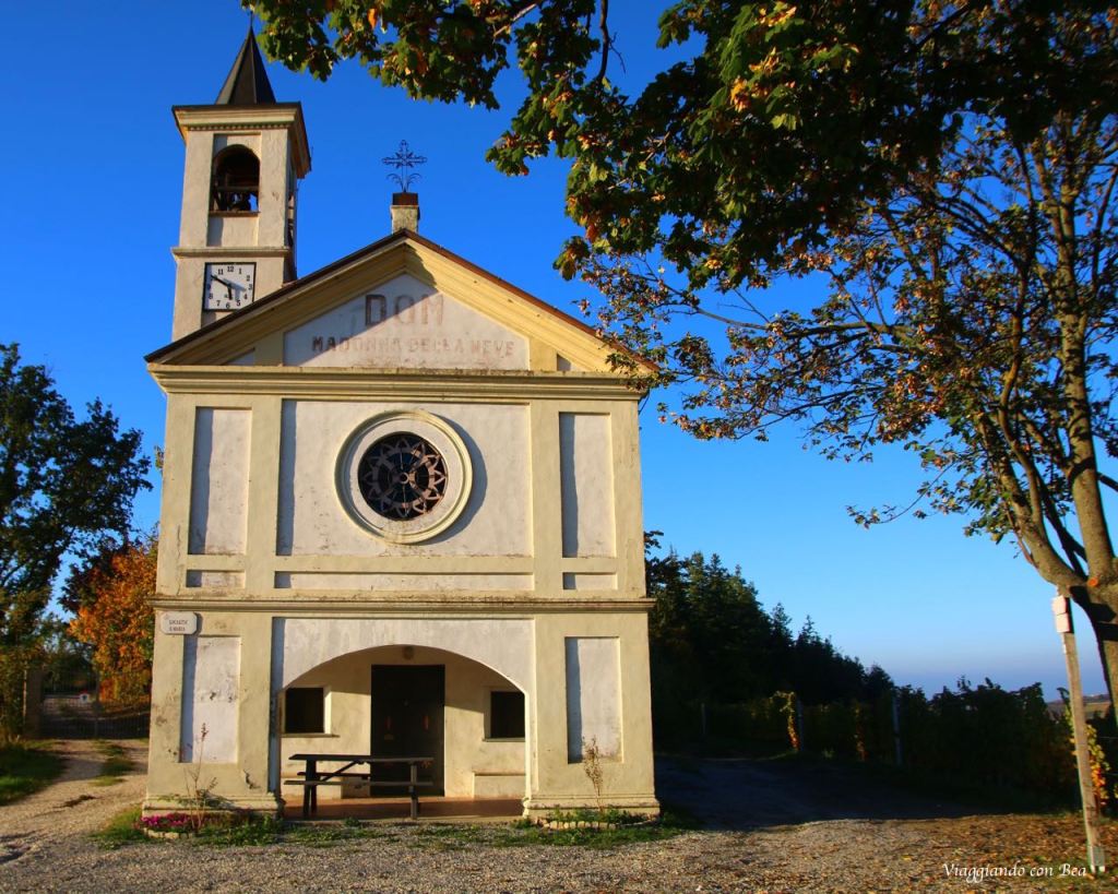 E’ quasi superfluo ribadire che il panorama a 360° che spazia sull’intera vallata è un vero spettacolo.Ormai siamo quasi al tramonto è giunta l’ora di andare verso Cortemilia. Un po’ fuori rotta ma l’idea di dormire e cenare in un vero maniero ci attirava proprio tanto, Agriturismo Castel Martino. Lungo il percorso non potevamo non concederci uno scatto verso il candore della Cappella campestre di Santa Maria della Neve nel comune di Roddino e verso quei filari di vite così magicamente dorati.