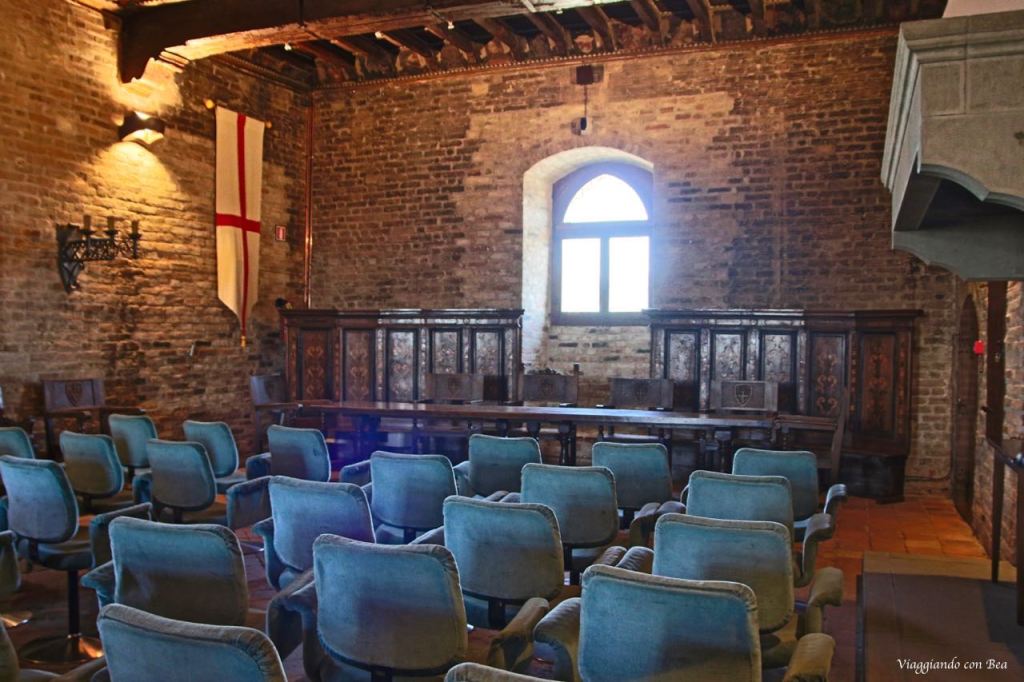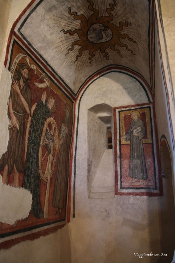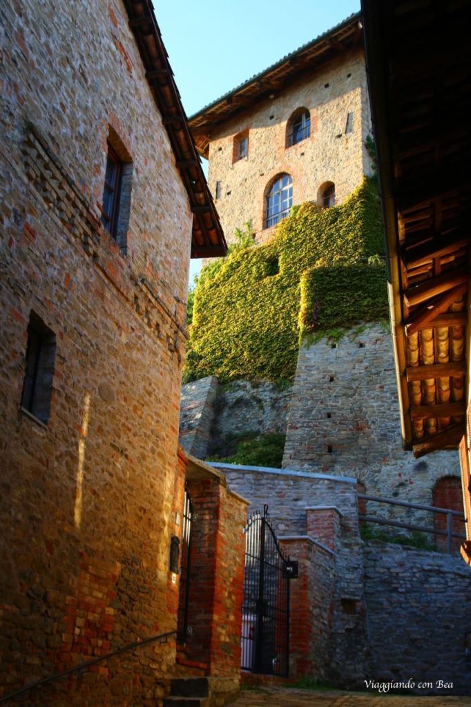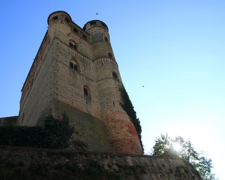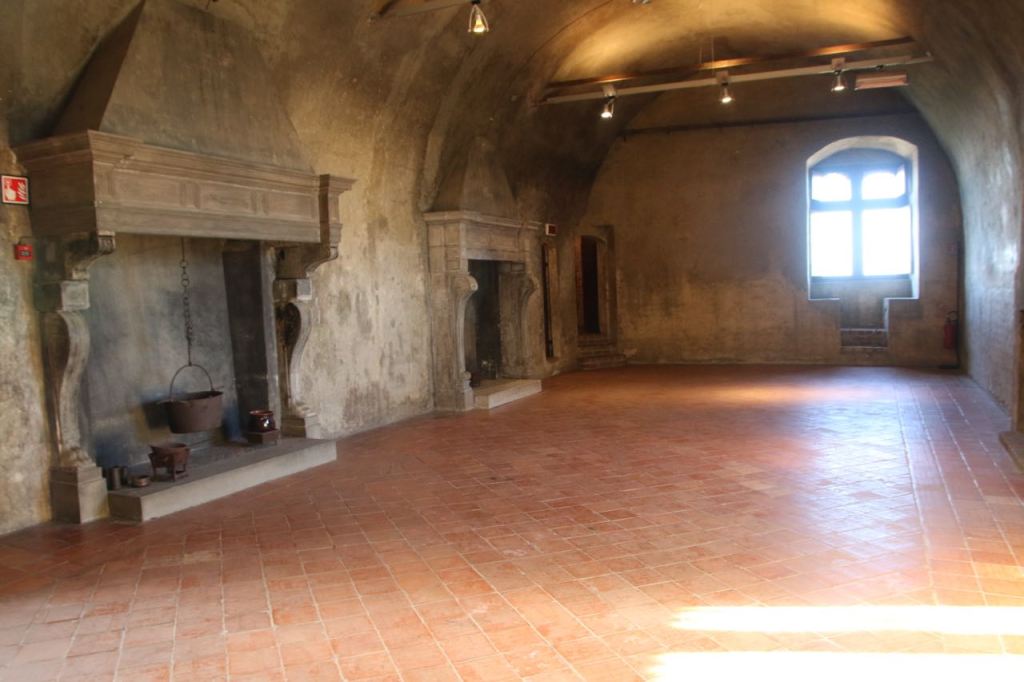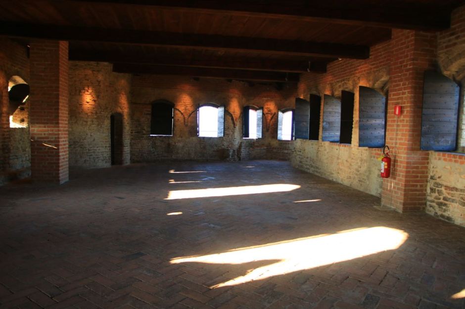 L’ingresso al Castello lo si effettua solo tramite visita guidata. Ciò che colpisce è la sua verticalità.Uno stormo di rondini garrisce tra le sue torri slanciate e fotografarlo mi da quasi una sensazione di stordimento. E’ considerato uno degli esempi meglio conservati di Castello nobiliare trecentesco del Piemonte. La nostra guida ci racconta la storia di quelle mura arrivate quasi intatte ai giorni nostri. Non ha subito attacchi militari, non è mai stato utilizzato come residenza ed è per questo che ha conservato intatta la sua struttura di roccaforte medioevale. Varcata la corte ed il ponte levatoio si accede alla sala di rappresentanza. Degli arredi originari sono rimasti solo i camini ed i soffitti a botte. All’interno della sala troviamo una cappella con antichi affreschi raffiguranti San Francesco e Santa Caterina.