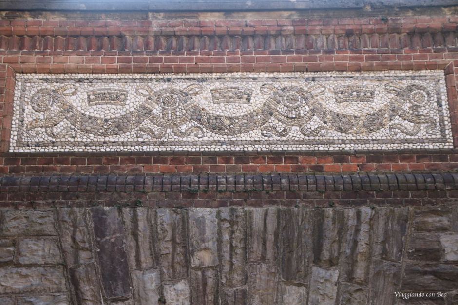 Non me l’aspettavo proprio. Internamente è riccamente decorata da mosaici d’ispirazione bizantina che richiamano il mausoleo di Galla Placidia di Ravenna. Sia nella cappella che nella cripta si nota l’utilizzo di materiali raffinati ed il gioco di luce che filtra attraverso pannelli in alabastro conferisce agli ambienti un non so ché di mistico.