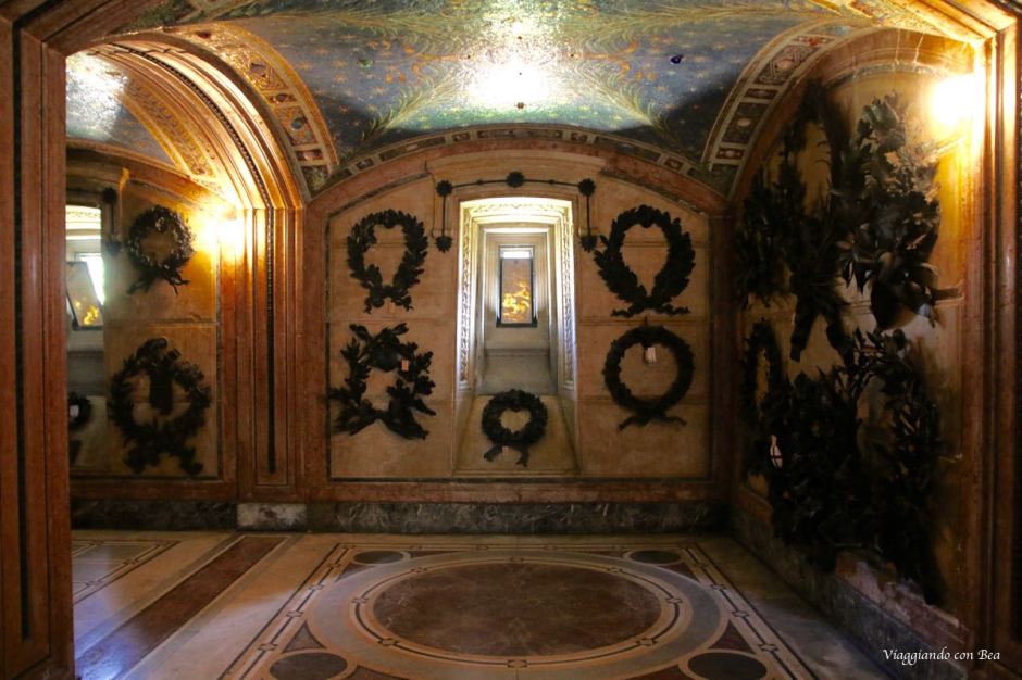 Dopo uno sguardo al giardino e qualche scatto qua e là ai particolari, si accede alla cripta. Non puoi che rimanerne affascinata. Interamente rivestita con marmi e bronzi.