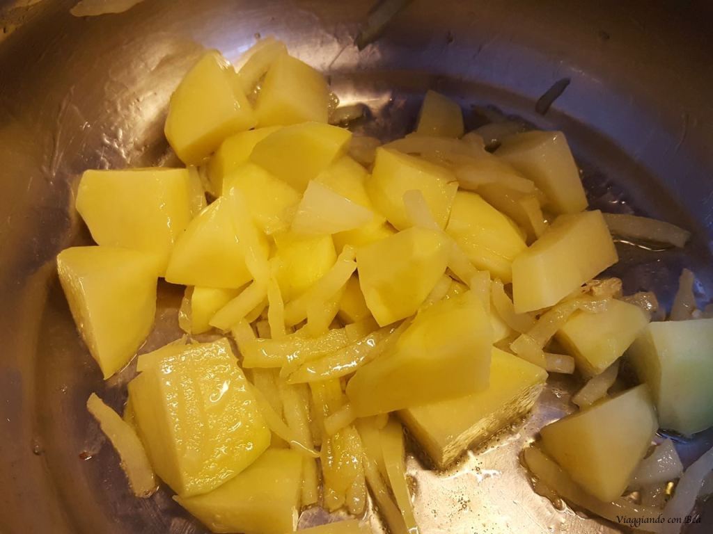 • Affettare la cipolla e far rosolare il tutto in una padella antiaderente