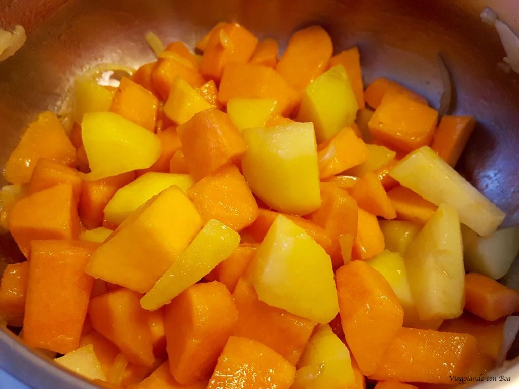 • Pulire la zucca e le patate e ridurre le verdure a tocchetti