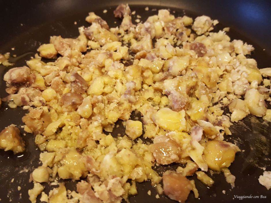• Sbriciolare le rimanenti castagne in una padella antiaderente