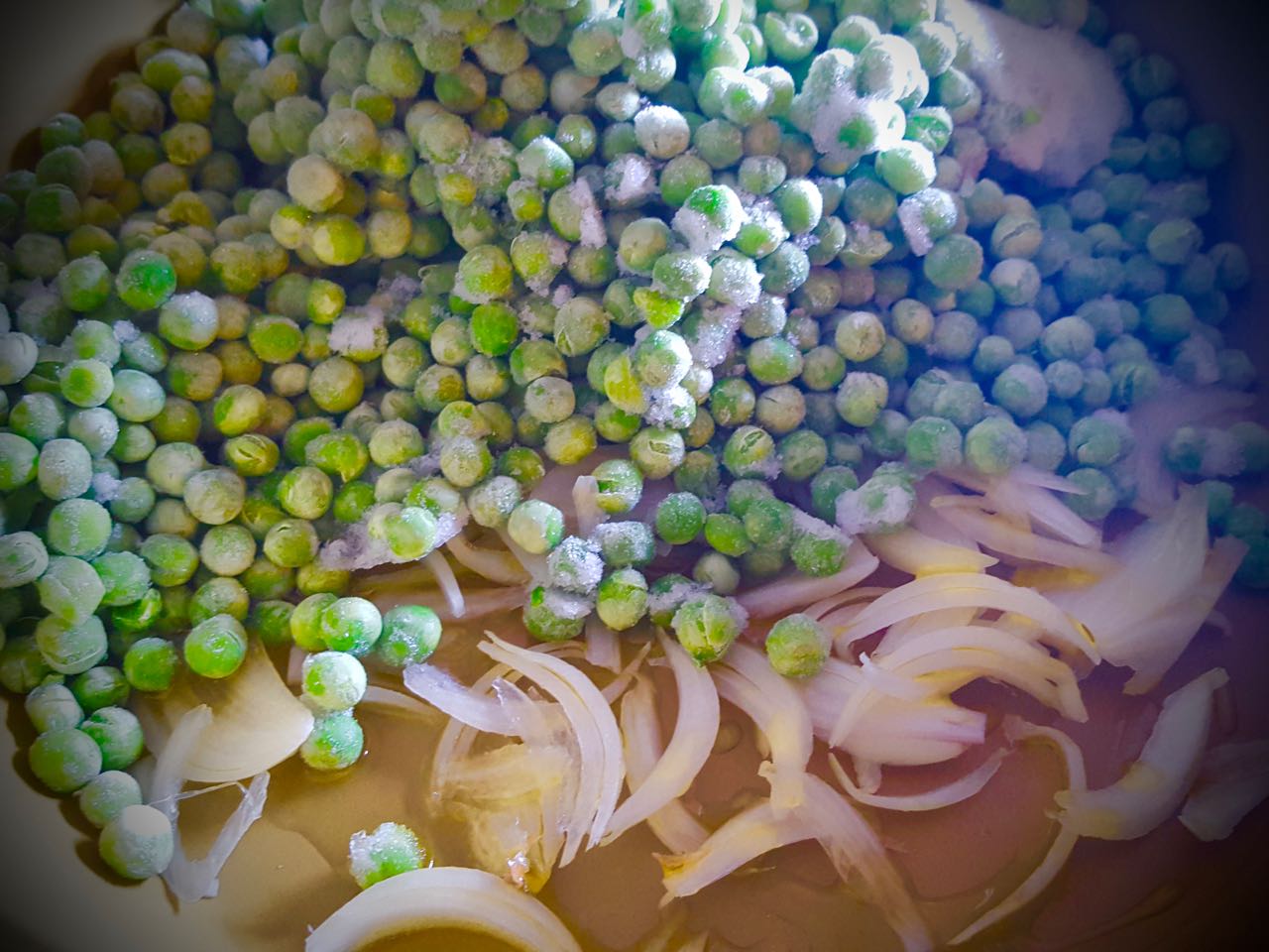 • 1/2 busta di piselli surgelati