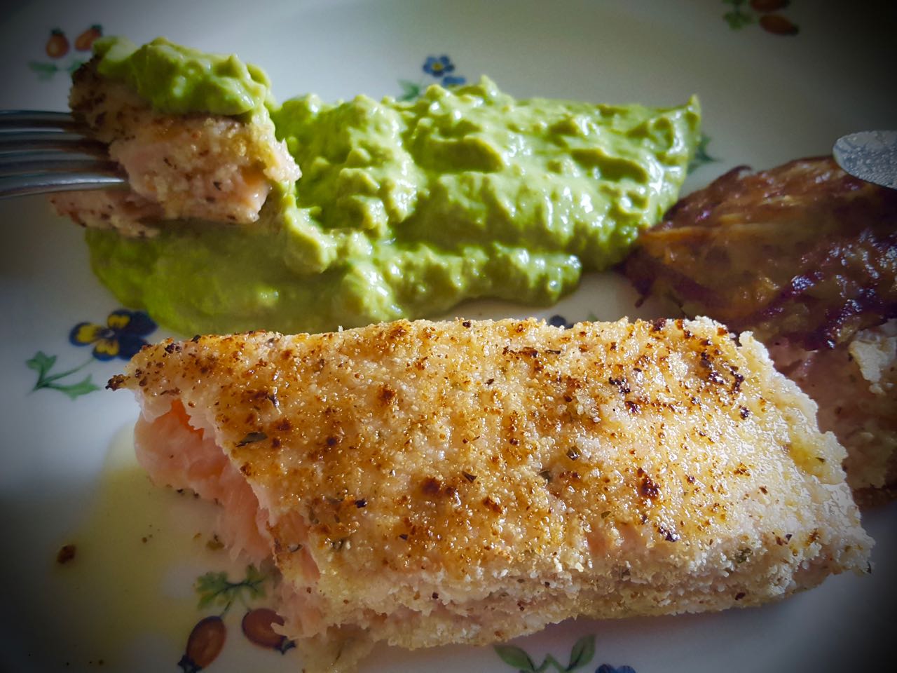 Salmone su crema di piselli