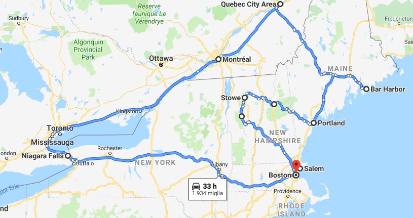E’ dall’inizio dell’anno che studio itinerari, leggo guide di viaggio. Ho conosciuto nuovi travel blogger e mi sono lasciata trasportare dalla fantasia. Non avete idea delle volte che ho temuto che questo sogno andasse in frantumi e adesso sono qui a darvi un saluto veloce per raccogliere qualche pacca sulla spalla di buon augurio. Con la mia Canon al collo immortalerò ogni singolo angolo del Freedom Trail. Sarà bello passeggiare a piedi nudi sulle immense distese di sabbia di Cape Cod. Mi è stato detto che Salem è un posto delizioso e forse potrò anche ascoltare storie di streghe che tanto mi affascinano. Prima di scoprire i fari della costa che da Portland va verso Bar Harbor si farà una capatina all’interno alla ricerca di quelle strade famose per il foliage. Esplorare Acadia Park spero sia un’esperienza indimenticabile e spero di realizzare scatti da sogno. Da Bar Harbor si corre verso Quebec City, Montreal e, dulcis in fundo, Niagara Falls.