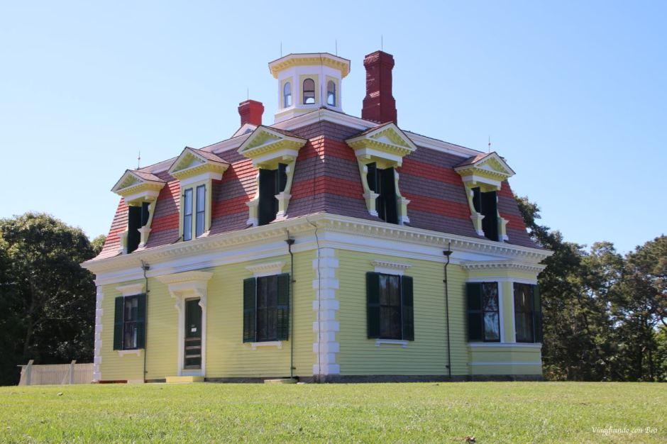 Se sei a Boston non puoi assolutamente perdere Cape Cod. Non è solo il paesaggio che ti ammalierà ma sarà la vita allegra dei suoi villaggi e, sopratutto, la presenza di fari ognuno dei quali ha la propria storia sicuramente interessante da scoprire. Nobska Lighthouse, incastonato tra la spiaggia di Woods Hole e quella di Silver Beach, si erge solitario sull’estremità a sud-ovest della penisola. Il primo faro costruito in questa posizione risaliva al 1828 ed era costituito da una piccola abitazione e da una torre. La struttura attuale, eretta nel 1872, è alta 13 metri ed è composta da blocchi di ghisa. Ho letto su internet che il colore del fascio che viene proiettato cambia a seconda delle condizioni meteo marine: bianco quando il tempo è buono o rosso se c’è una condizione di pericolo. Accanto al faro si trova l’abitazione utilizzata in passato dal custode che oggi ospita un’importante base della Guardia Costiera.