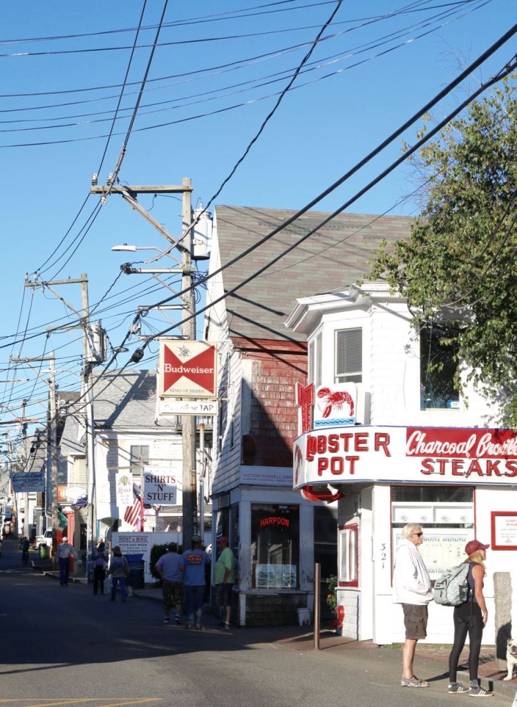 Una spiaggia dopo l’altra, alte dune ed il viaggio prosegue verso Provincetown. Attenzione, potrebbe non piacervi!! Io l’ho trovata affascinante. Trasgressiva, animatissima, un vero pullulare di artisti e molto altro ancora. Le case in legno ognuna con il proprio colore sgargiante, insegne luminosissime, minuscoli edifici addossati gli uni agli altri senza un ordine preciso. Cavi della luce penzolanti che quasi te li senti addosso. Questa è Provincetown secondo il colpo d’occhio di Bea.