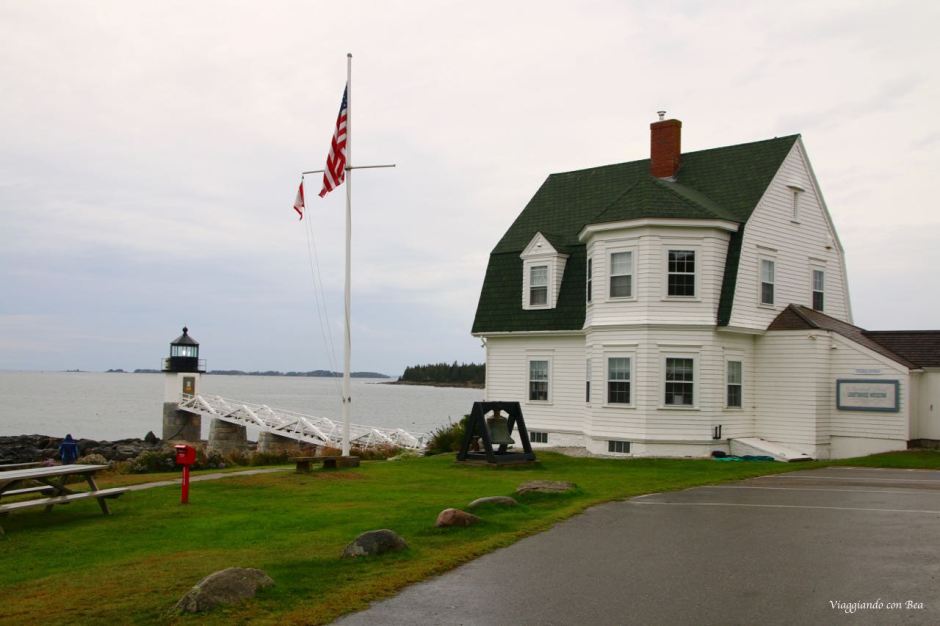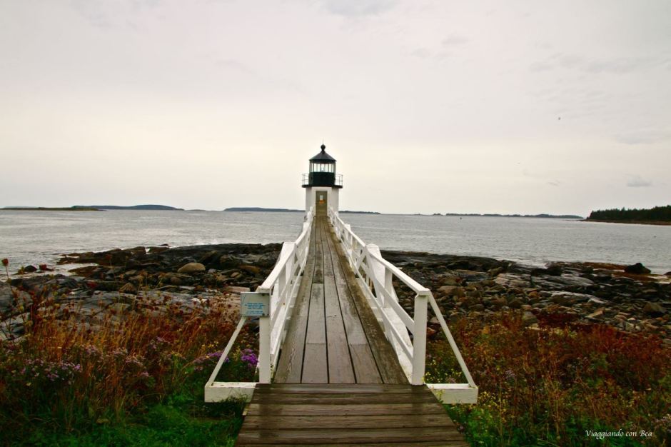 Continuando il nostro on the road, siamo giunti al 7° giorno, si punta verso Bar Harbor. La costa è molto frastagliata. Nel nostro programma iniziale dovevamo fermarci in ogni cittadina, credevamo di poter volare su quelle scogliere a picco sul mare ed invece la strada correva leggermente all’interno privandoci della bellezza dei panorami 😦 Abbiamo allungato il percorso di una sessantina di km per approdare a Marshall Point Lighthouse, proprio come ha fatto Forrest Gump.