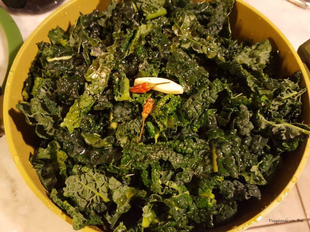 Per questa ricetta devo ringraziare Annalisa che, da buona toscana, ci ha preparato dei deliziosi crostini di cavolo nero. Seguendo fedelmente la ricetta, Annalisa ha spalmato di aglio le fette di pane abbrustolito e su ogni crostino ha adagiato del cavolo nero lessato arricchito dal gusto intenso di un buon olio extravergine d’ oliva. Bea non poteva che riproporre la ricetta stravolgendola e rendendola più sicula che toscana.