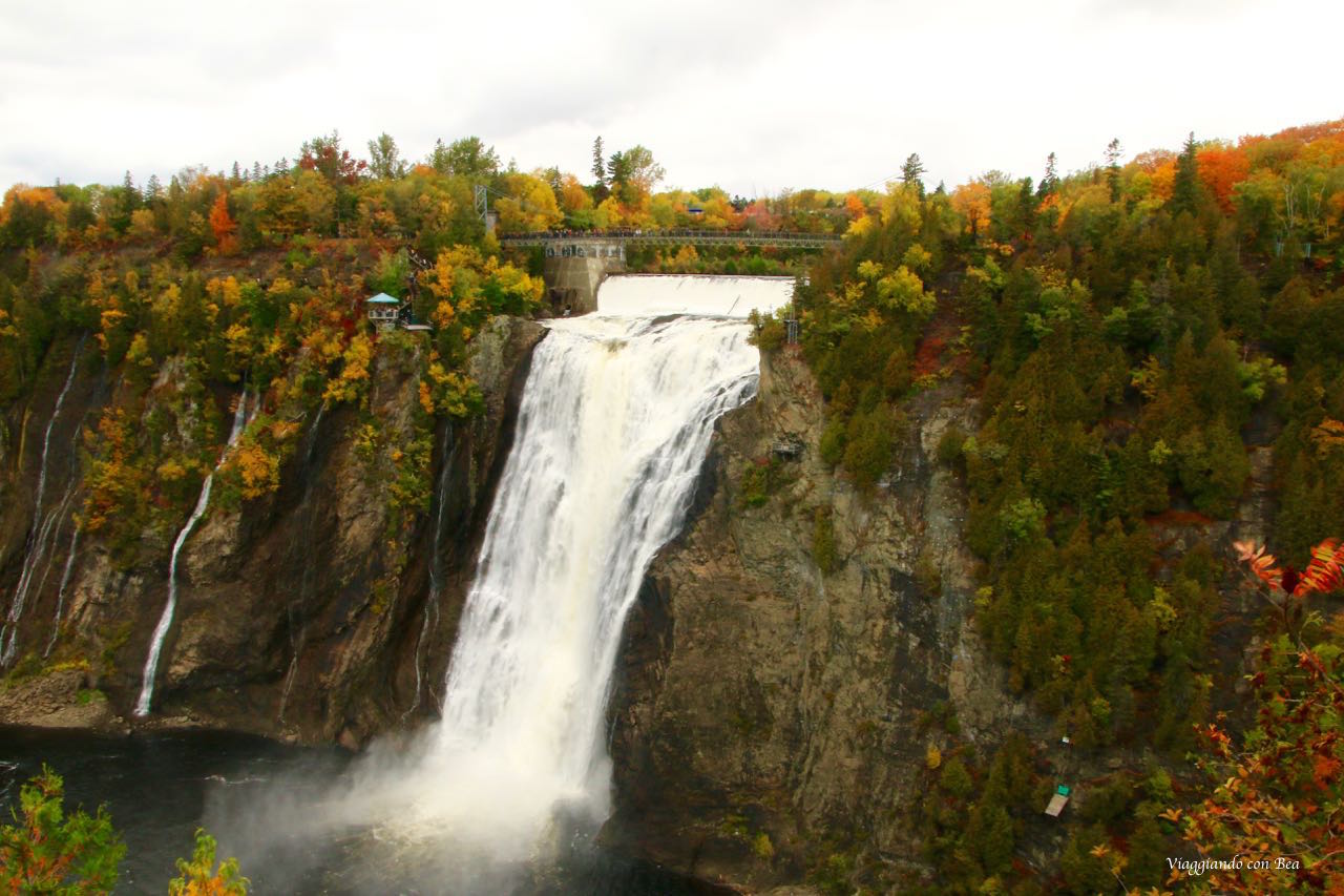 Innumerevoli sono i volti del Canada. Città moderne sempre all’avanguardia e città storiche con architetture che ricordano la vecchia Europa, vedi la “très charmant Quebec City”.  La natura a nord di Quebec City deve essere qualcosa di meraviglioso con distese infinite di boschi che in ottobre s’incendiano di rosso e poi… lo scorrere del fiume che verso la foce si allarga creando un tutt’uno con le acque marine. Prima di viaggiare verso Montreal e percorrere virtualmente insieme parte de… “Le Chemin du Roy” , desideravo farvi fare un tuffo di ben 83 m. dalle Chut-Montmorency. A questa gita fuori porta abbiamo dedicato parte della nostra seconda giornata trascorsa a Quebec City . Per giungere alle cascate è sufficiente