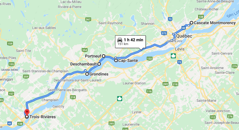 E’ giunto il momento di partire per Montreal. Andremo alla scoperta di parte di quel percorso stradale, realizzato a partire dal 1730, che si chiama Le Chemin du Roy. E’ una delle strade più antiche del Canada che collegava Montreal a Trois-Rivières e a Quebec City. Un percorso di circa 281 km da fare con tutta calma.  A tratti abbiamo seguito la veloce autoroute 40 e a tratti, desiderosi di viaggiare il più vicino possibile lungo le sponde del fiume San Lorenzo, si cercava di seguire la route 138.