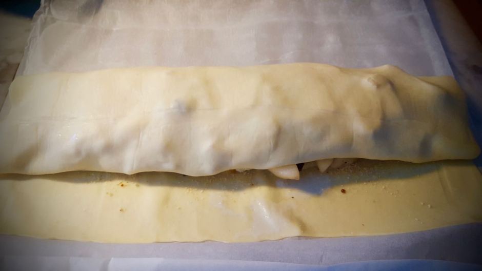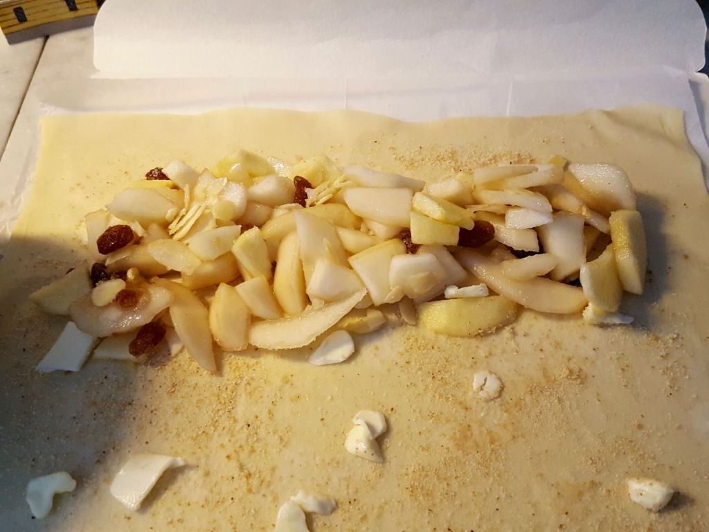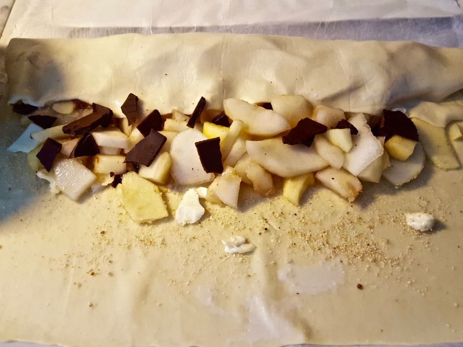 - Aggiungere ancora frutta e cioccolato prima di chiudere a pacchetto le due estremità