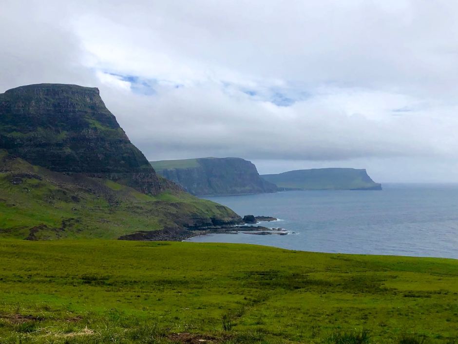 Se l’aria è tersa, il cielo è talmente limpido che regala ad ogni panorama delle pennellate di colori che sarà difficile dimenticare ma vedere il luogo magico di Fairy Glen con nuvole basse e minacciose ti regala un’emozione unica. Si trova a due passi da Uig e si dice che qui vi vivano fate e folletti. Partendo dal laghetto si passeggia tra le montagne ondulate e andando sempre più in alto si giunge in cima ad una roccia detta Castle Ewan per la sua forma che richiama un castello.  Ultimo stop sull’isola lo avete fatto alle Mealt Falls e devo dire che lo spettacolo che si gode dalla sommità della scogliera, Kilt Rock, è incredibile. Un tuffo in mare da un’altezza di 90 metri. Che dire… stupendo!!!!