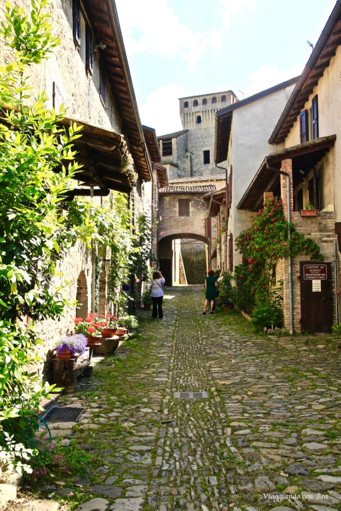 Il pugno di case colorate di questo nucleo, che ha mantenuto la struttura del borgo rurale medioevale, aprono l’accesso all’imponente rocca che svetta a strapiombo sul torrente Enza. Con l’alta cinta muraria è uno dei più importanti esempi di architettura fortificata ed oggi conserva intatta la configurazione quattrocentesca datagli da Guido Torelli, condottiero della famiglia Visconti. Non si può che rimanere colpiti dall’imponenza della sua massiccia struttura che in origine era difesa anche da una seconda cinta muraria più esterna edificata lungo il perimetro del borgo.