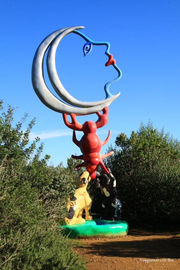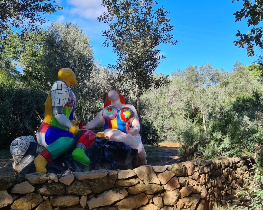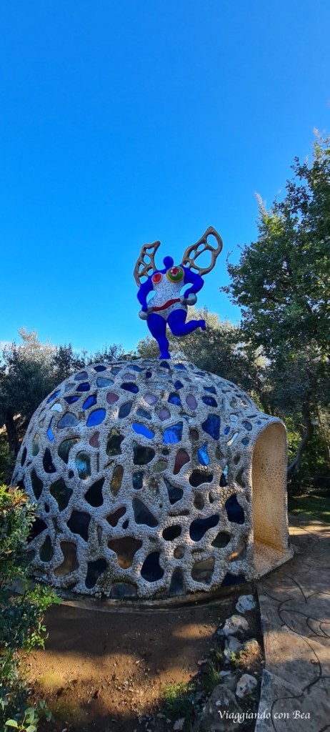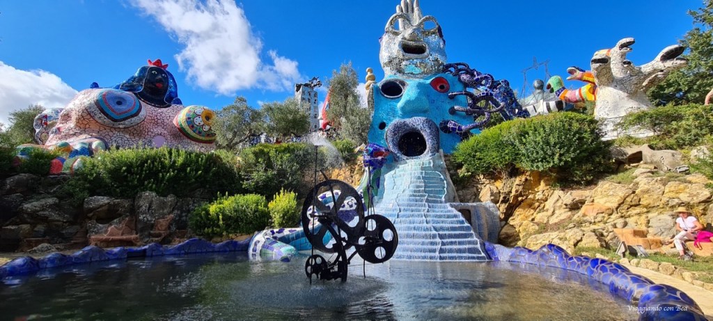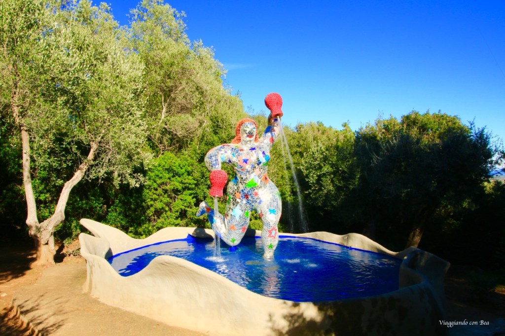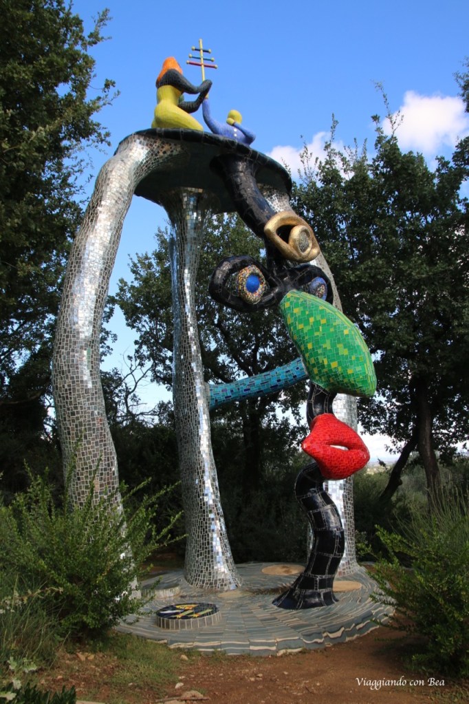 Ma, miei cari followers, la vera chicca di Capalbio, che non puoi assolutamente perdere, è “Il Giardino dei Tarocchi”. E’ un giardino pazzesco. Siamo sulla collina di Garavicchio in provincia di Grosseto eppure hai la sensazione di aver preso un last minute ed esserti catapultato a Barcellona. Da non credere!! Con il naso all’insù ti aggiri incredulo tra quelle sculture dai colori sgargianti alte dai 12 ai 15 metri e con l’entusiasmo di un bimbo vuoi esplorare ogni singolo angolo di questo parco che sa di magico. Non appena varchi l’ingresso del Parco una scritta gigantesca accoglie il visitatore ed è qui che hai modo di conoscere l’artefice di questo capolavoro, Niki De Saint Phalle. Nel lontano 1955 Niki, all’età di 25 anni, visitò Barcellona e rimase folgorata dall’arte unica di Gaudì. Parque Guell fu la sua fonte d’ispirazione e fu allora che decise di realizzare un “rifugio dove trovare pace e gioia”.