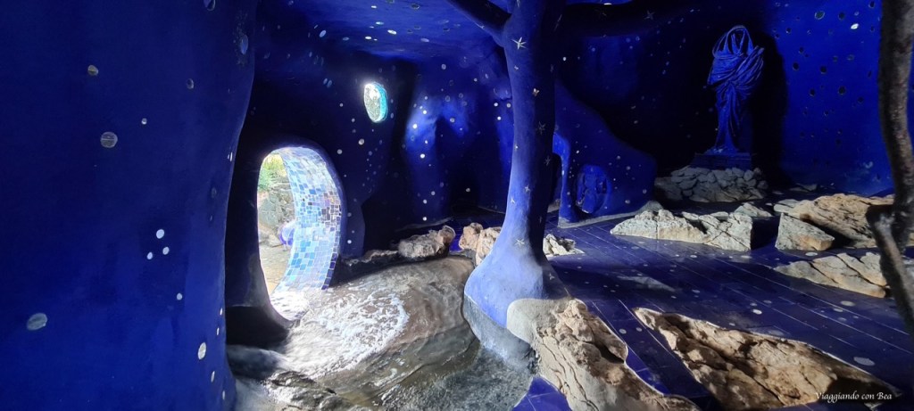 Ciò che ancora di più crea stupore e meraviglia è l’interno della Sfinge. Un mini appartamento fatto di mosaici di vetro pregiato e ceramiche dove pare che qui Niki abbia vissuto durante gli anni spesi per la creazione del giardino.