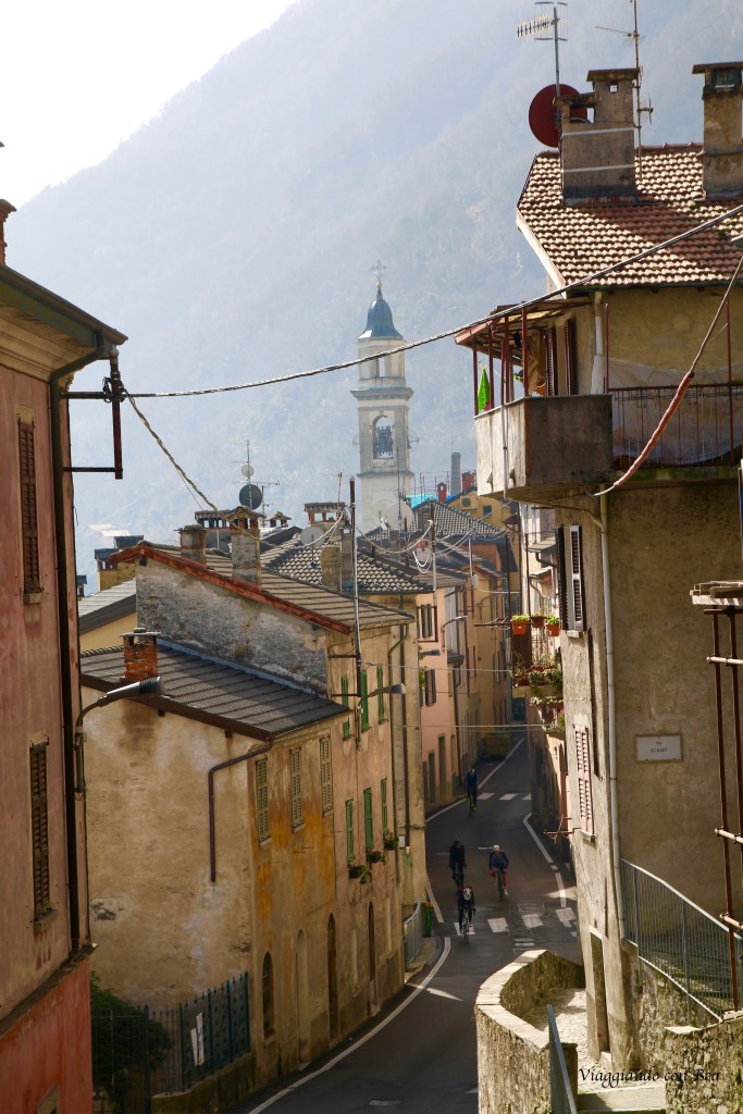Il borgo successivo che s’incontra è quello di Argegno. Avremmo voluto fermarci ma, ahimè, le case dai colori pastello, affacciate sulle rive del lago, le ho potute immortalare solo sfrecciando veloci lungo la via vecchia regina. Questo borgo meritava proprio una sosta perché, curiosando su internet, ho scoperto che c’è una funivia che in una decina di minuti porta fin su al monte Pigra (880 m.) Giunti in cima si trovano indicazioni per percorsi di trekking di vari livelli di difficoltà. Io, se mi fossi concessa questa sosta di un’oretta, pigra come sono, avrei optato per una passeggiata semplice a tu per tu con la natura seguendo le indicazioni per il Belvedere Pigra. E’ da qui che il fotografo che c’è in ognuno di noi si sente appagato per il bellissimo panorama che spazia dal lago fin su verso la Val d’Intelvi.