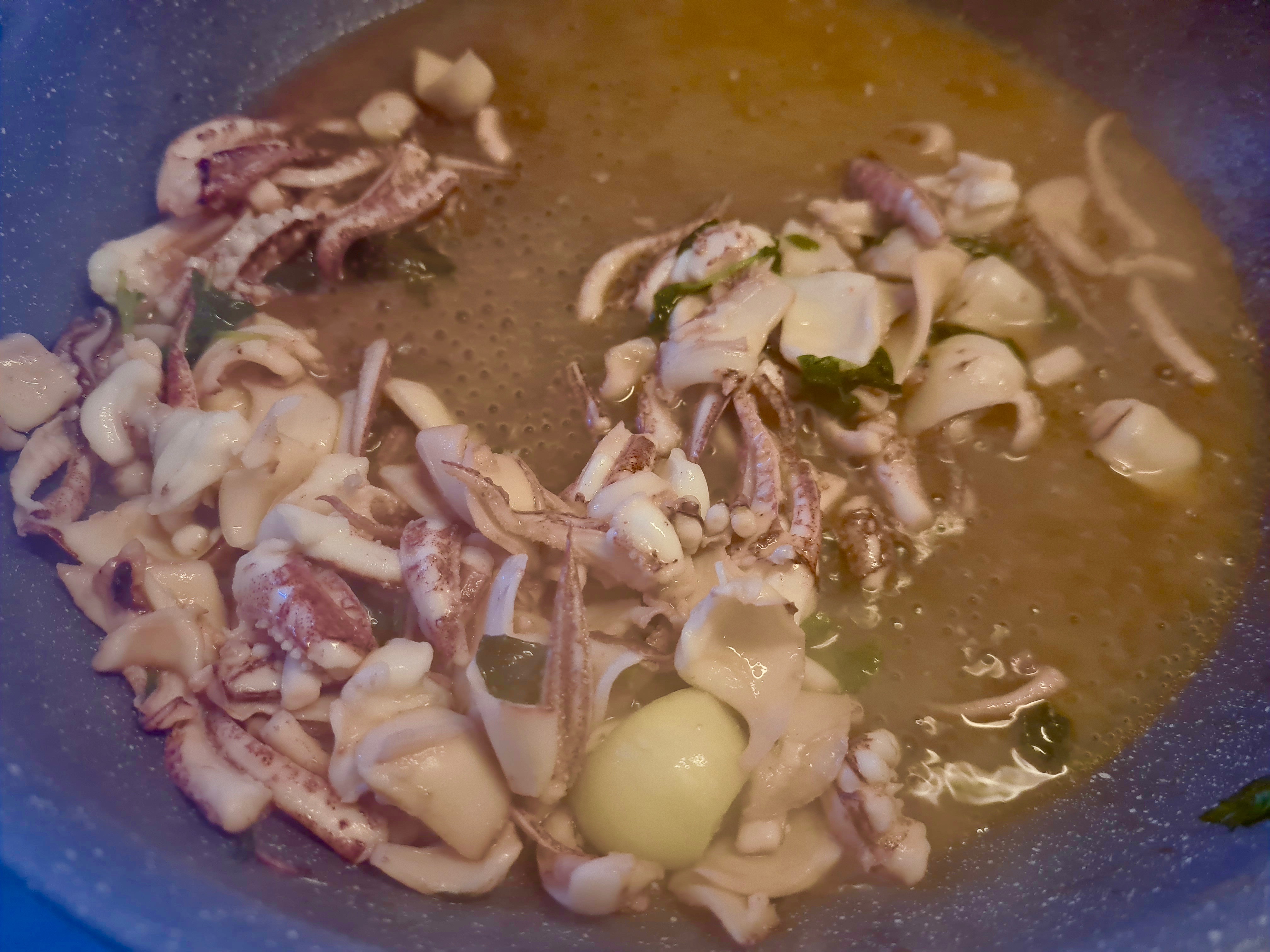 - tenere da parte il sughetto che verrà utilizzato per cuocere i calamari