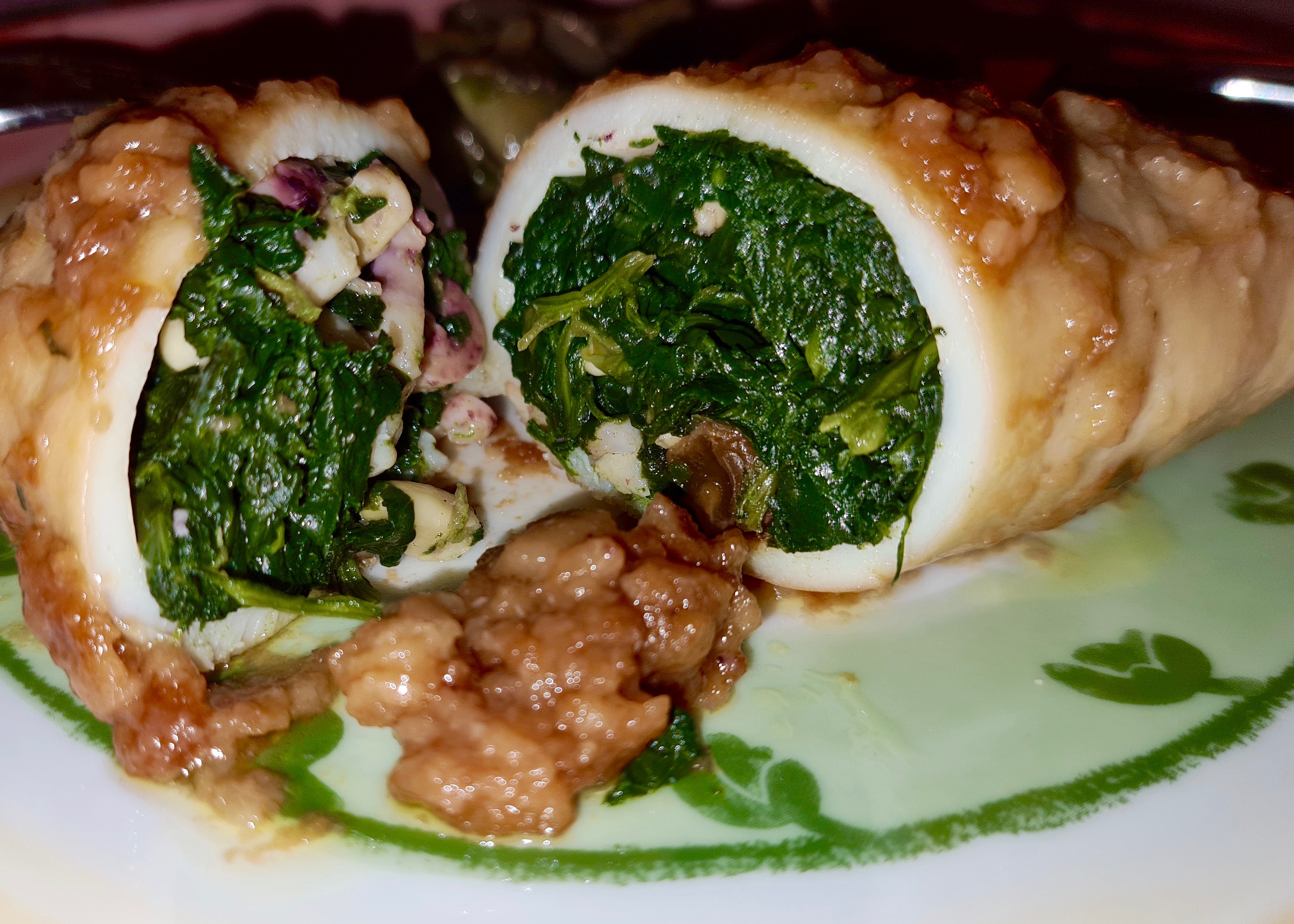 - a cottura ultimata farcire i calamari con pesce e spinaci