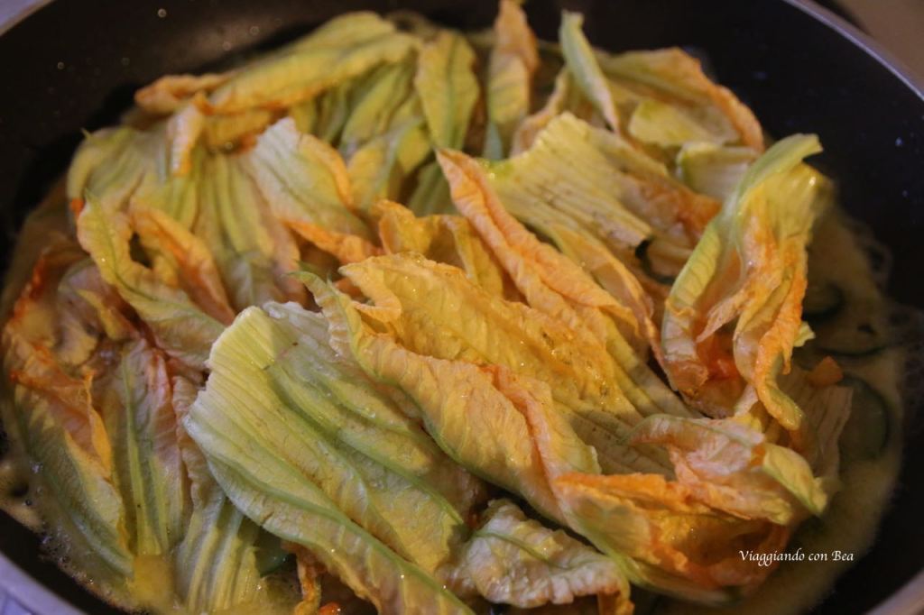 - pulire i fiori di zucca eliminando i pistilli e lavarli delicatamente