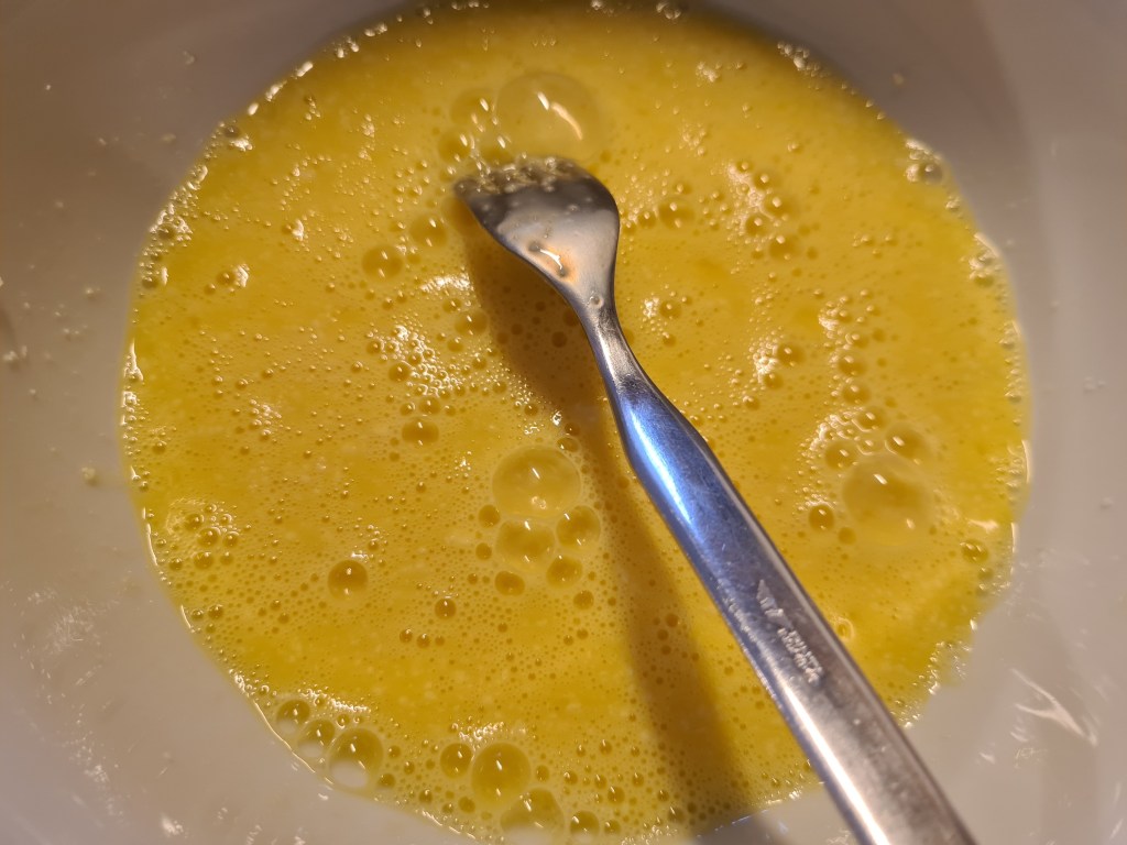 - rompere le uova in un piatto, aggiungere il parmigiano ed amalgamare il tutto