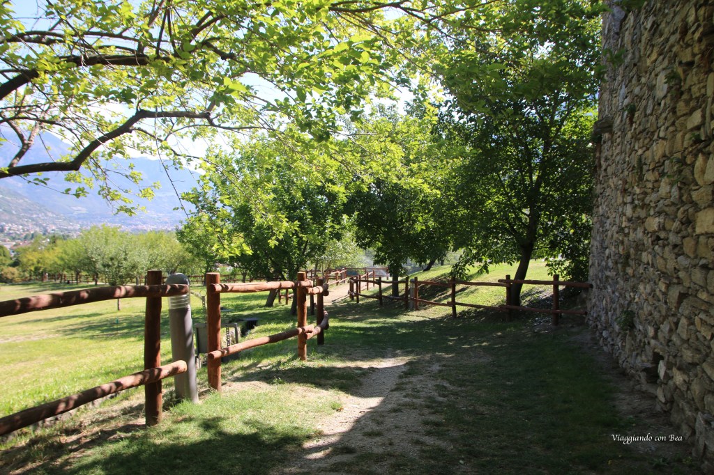 Con il suo aspetto massiccio e la sua alta torre merlata poggia su un terrazzamento ricco di vigneti.