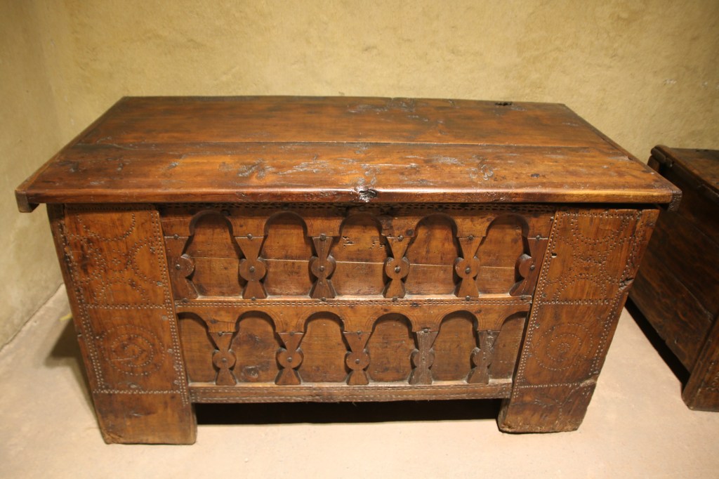 Qui ci troviamo all’interno di due ampie sale di cui una è chiamata “poelle” cioè stanza riscaldata e oggi è detta la stanza del “tribunale” per l’affresco posto sul camino con le virtù cardinali tra cui spicca la Giustizia. Nell’altra sala sono esposti dei cassoni tipici della zona del Monviso.