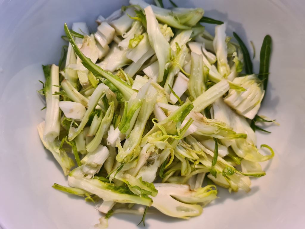- lavare le puntarelle e sfilettarle